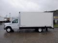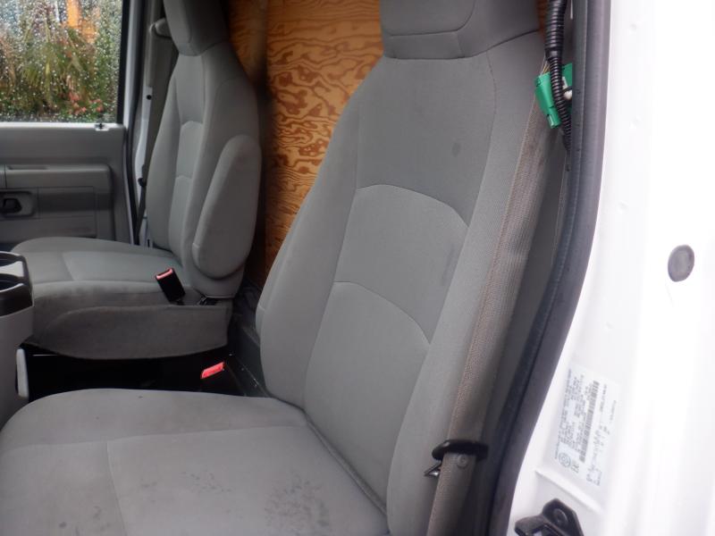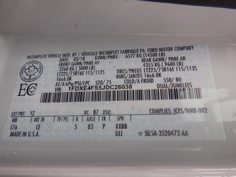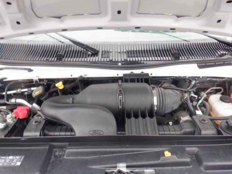 2018 Ford Econoline E450 16 Foot Cube Van With Ramp, 6.8L V10 SOHC 20V Gas engine. 10 cylinder, 2 door, automatic, RWD, cruise control, air conditioning, AM/FM radio, white exterior, grey interior. Width is 7 Foot 8 inches and height 6 Foot 11 inches .