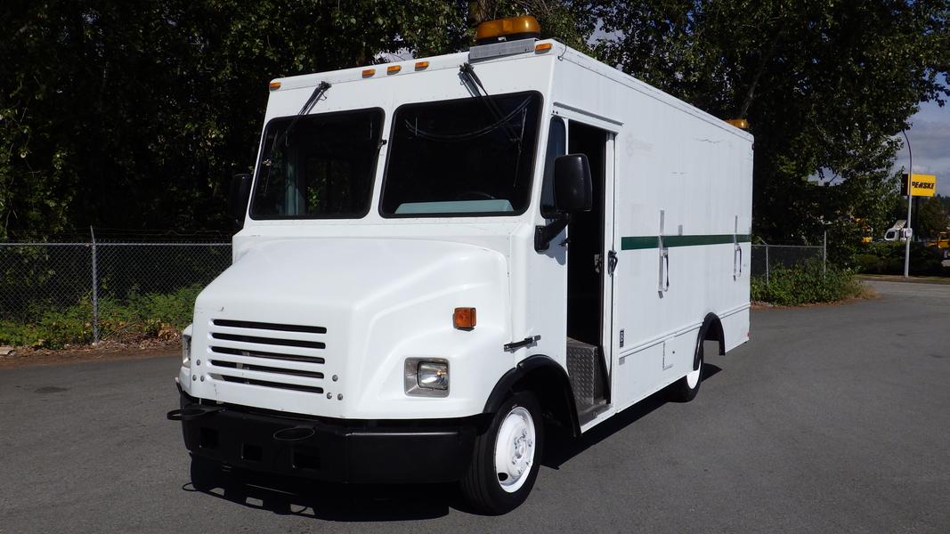 2004 Freightliner MT45 Cube Step Van with Rear Shelving Diesel, 5.9L, 2 door, automatic, 4X2, cruise control, Pioneer head unit, Honda gasoline generator, rear heat, 12 volt in, fans, rear flood lights, white exterior, black interior, cloth. Wheelbase: 13.1 Feet, Milage is considered to be accurate but is not guaranteed / unverified