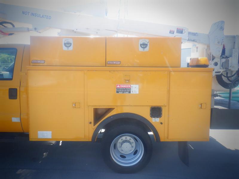 2007 Ford F-550 Regular Cab Service Truck With Bucket 4WD, 6.0L V8 OHV 32V TURBO DIESEL engine, 8 cylinder, 2 door, automatic, 4WD, radio, two 12v, outlet, PTO, Various lights, storage boxes and compartments, fully functional bucket crane, power stroke turbo diesel v8 engine, cruise control, air conditioning, AM/FM radio, yellow exterior, black interior, cloth. Certification and decal valid until April 2024. Measurements: Bucket Height: 37.5 foot, Total Length of the truck: 22 Foot(All the measurements are deemed to be correct but are not guaranteed).