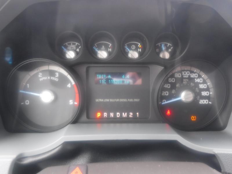 2012 Ford F-250 XL Crew Cab Short Box Diesel 4WD with Canopy, 6.7L V8 OHV 16V DIESEL engine, 8 cylinder, 4 door, automatic, 4WD, 4-Wheel ABS, cruise control, AM/FM radio, CD player, power door locks, power windows, power mirrors, yellow exterior, black interior.
