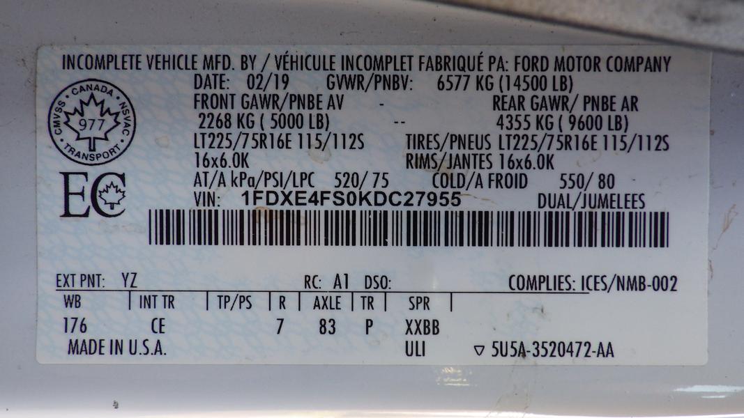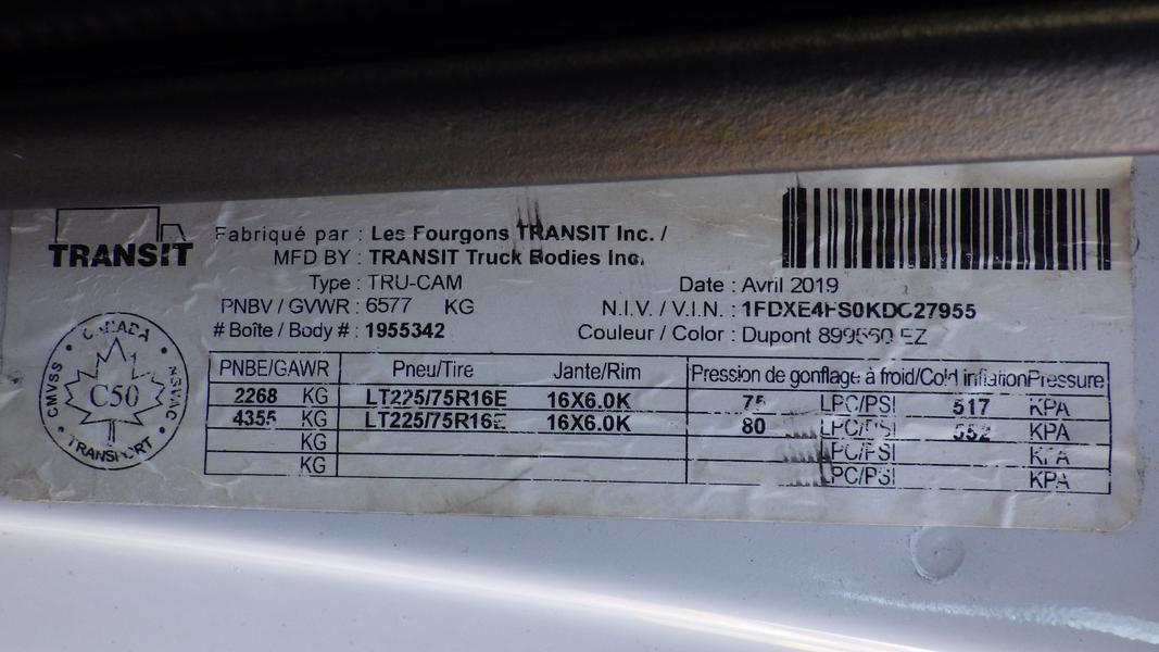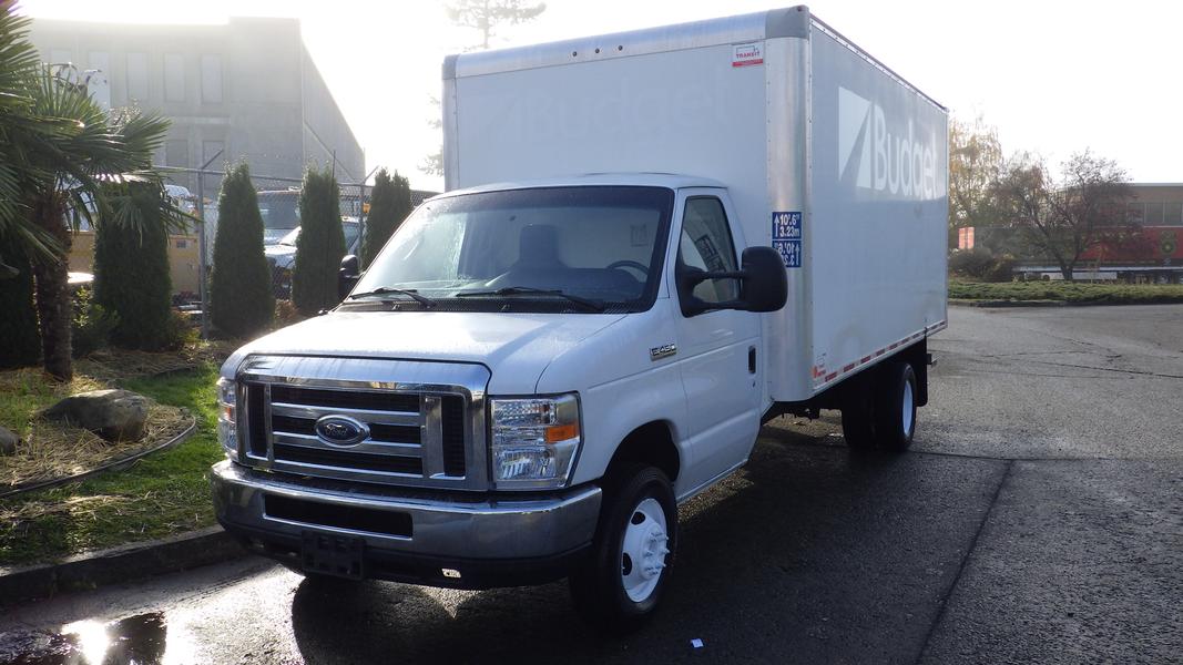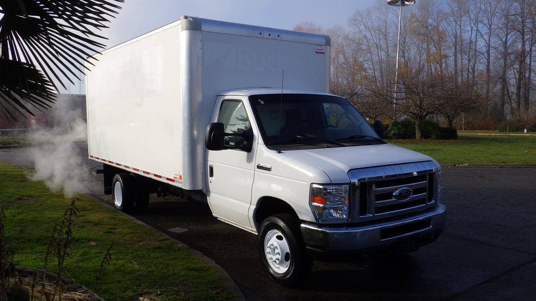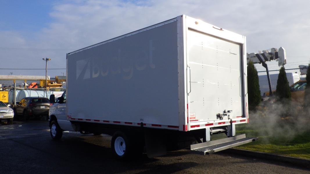 2019 Ford Econoline E450 16 Foot Cube Van with Ramp,6.8L V10 SOHC 20V Gas engine, 10 cylinder, 2 door, automatic, RWD, cruise control, air conditioning, AM/FM radio, white exterior, grey interior, cloth. Box size: 16 Feet Long by 7 Feet 8 Inches Wide by 6 Feet Tall. Certification and Decal valid until November 2024.