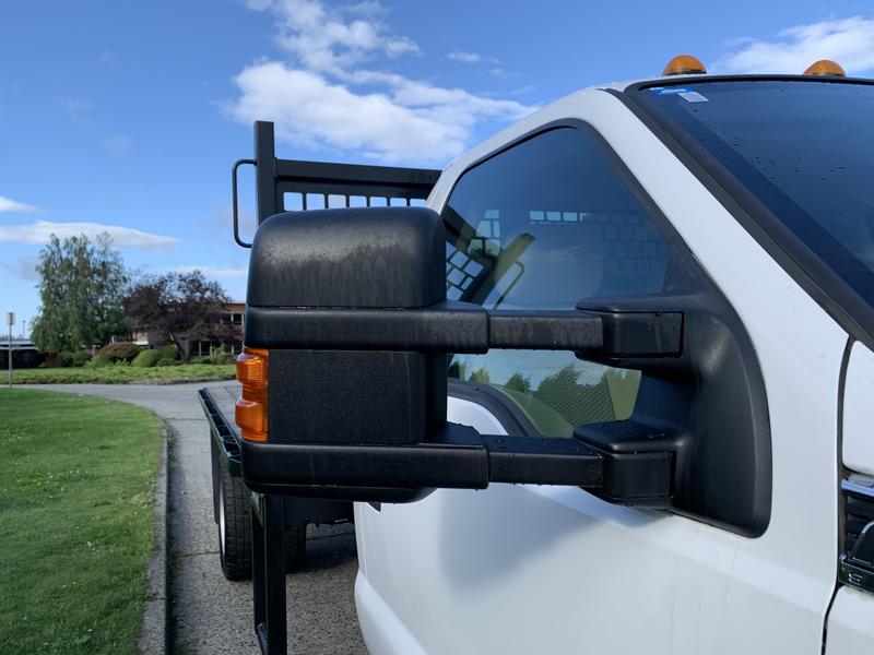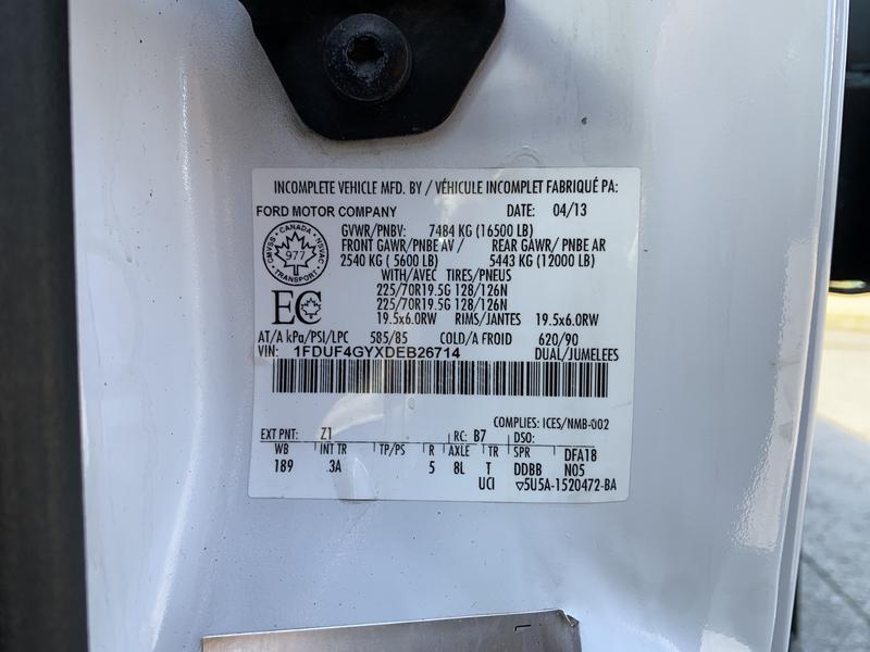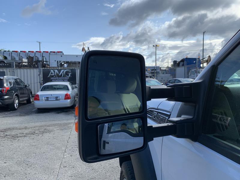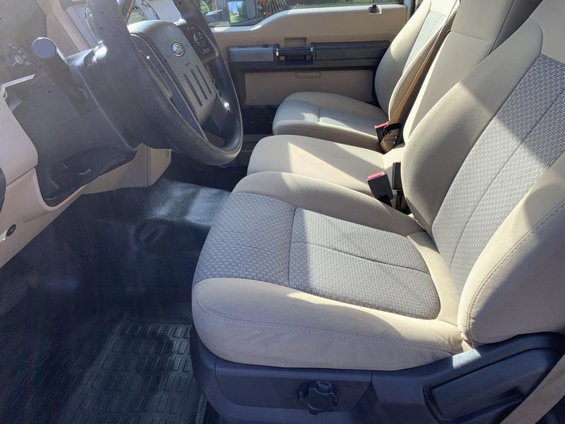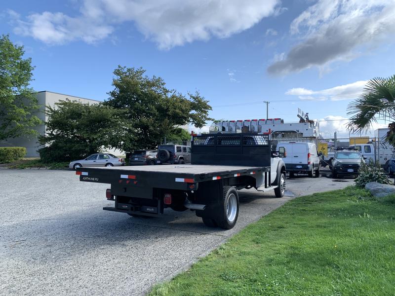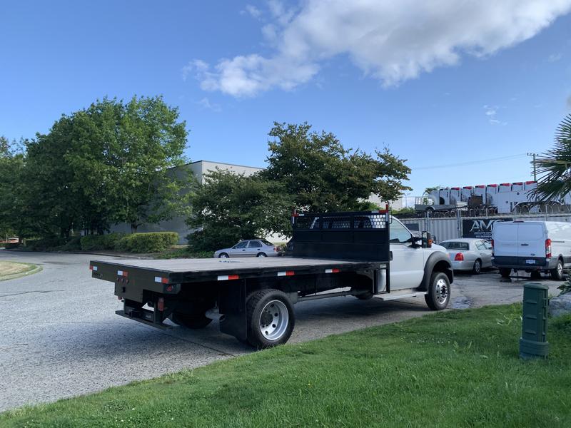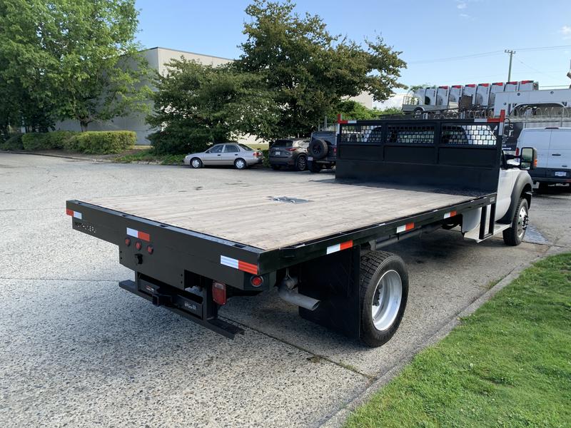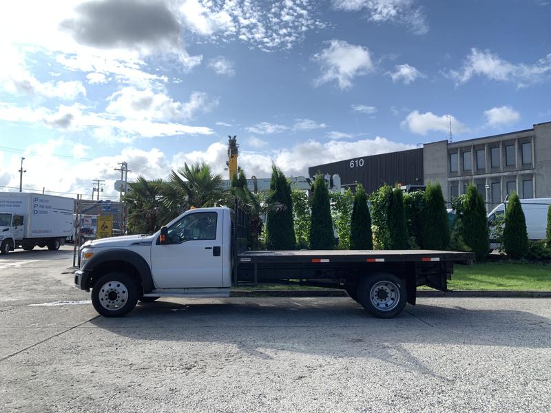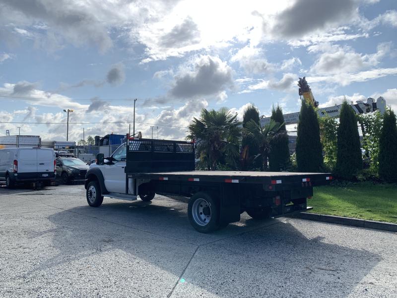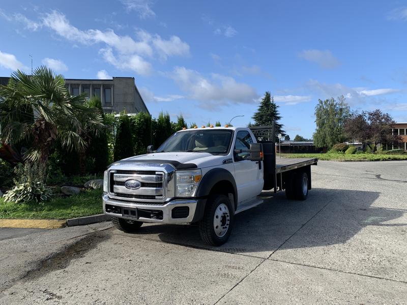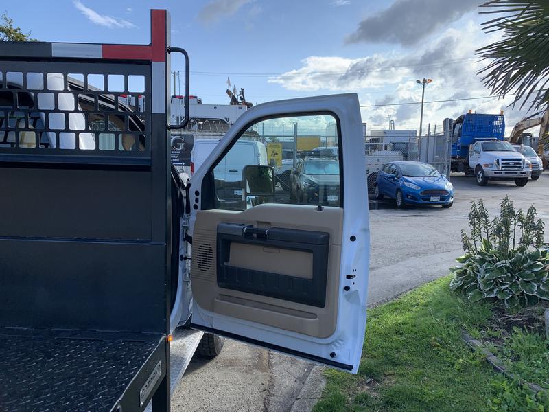 2013 Ford F-450 SD Regular Cab DRW Flatdeck 2WD Dually, 6.8L, 6.8L V10 SOHC 30V engine, 10 cylinder, RWD, cruise control, air conditioning, AM/FM radio, power windows, power mirrors, white exterior, black interior, cloth. Deck Dimensions: Length is 13 Feet 8 Inches Width is 8 Feet.
