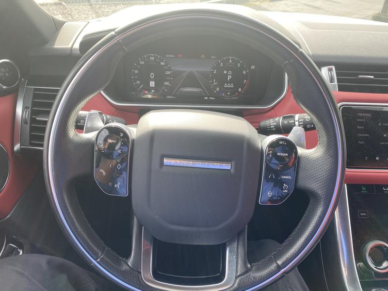 2020 Land Rover Range Rover Sport P525 HSE, 5.0L, 8 cylinder, 4 door, automatic, 4WD, 4-Wheel ABS, cruise control, air conditioning, AM/FM radio, navigation aid, bluetooth, usb, aux, heated seats, powered seats memory seats, push start, lane change assist, heated steering wheels, ac seats, heated seats, eco mode, gravel mode, mode mode sand mode, dynamic mode, power windows, power mirrors, white exterior, red interior, leather. (Engine Light On Needs Work)