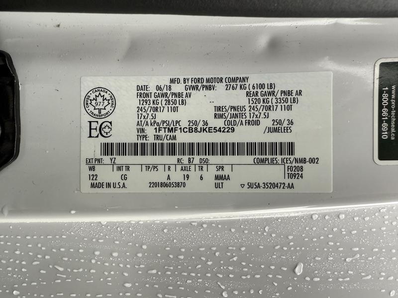 2018 Ford F-150 XL 6.5-ft. Bed With Canopy 2WD, 3.3L, 6 cylinder, 2 door, automatic, RWD, 4-Wheel ABS, cruise control, air conditioning, AM/FM radio, navigation aid, power door locks, power windows, power mirrors, white exterior, grey interior, cloth.