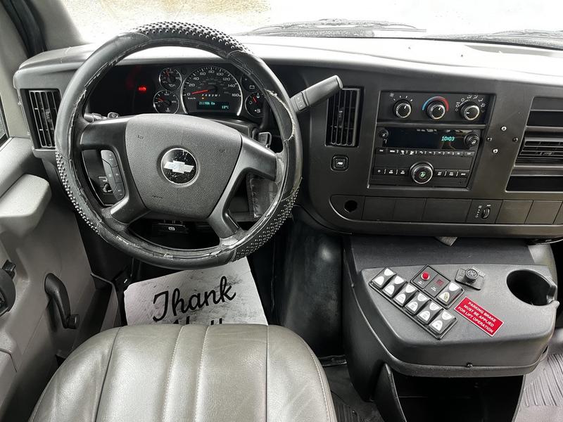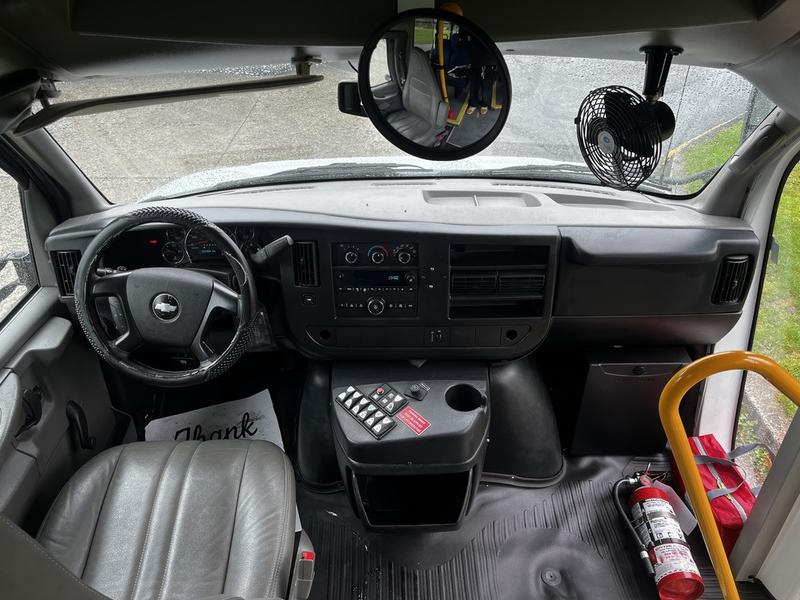2015 Chevrolet Express G450013 Passenger Wheelchair Accessible Duramax Diesel Shuttle Bus, 6.0L, 8 cylinder, 1 door, automatic, RWD, cruise control, air conditioning, AM/FM radio, whiye exterior, black interior. Certification and decal Valid until August 2025.