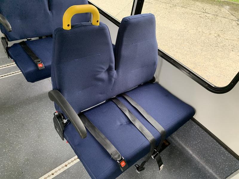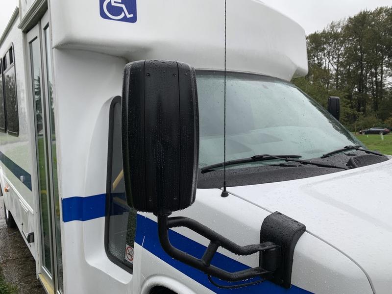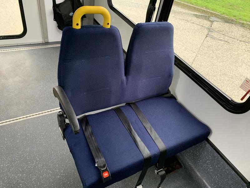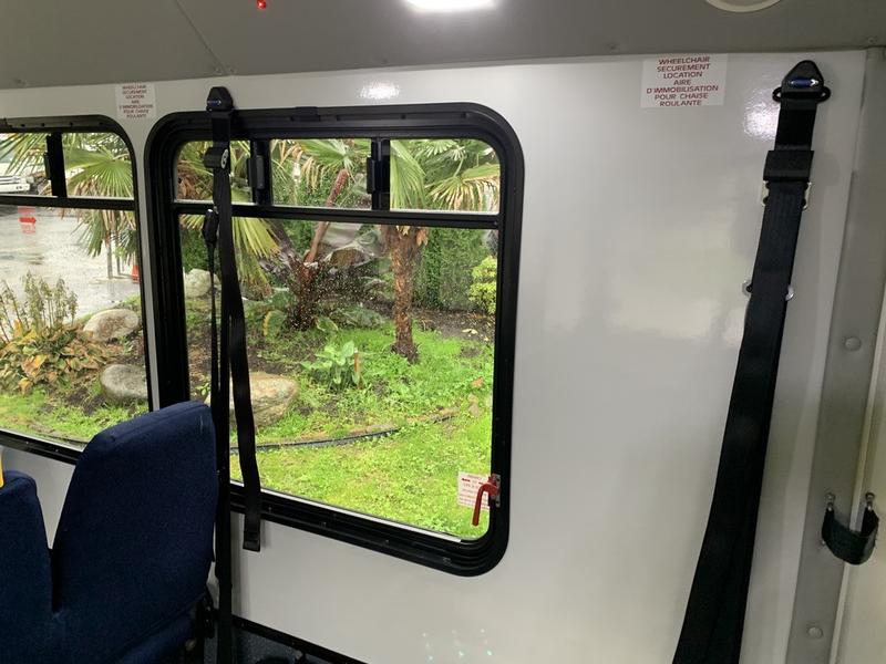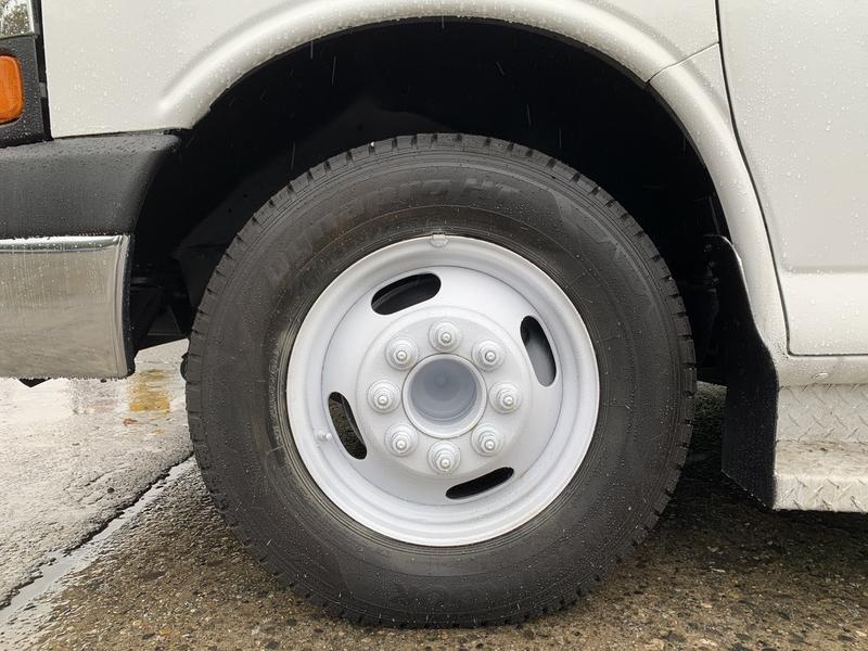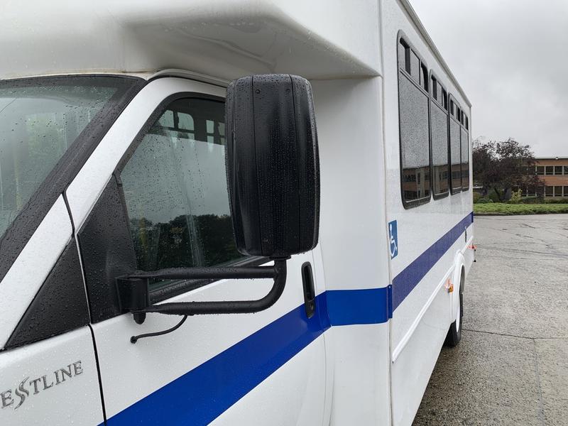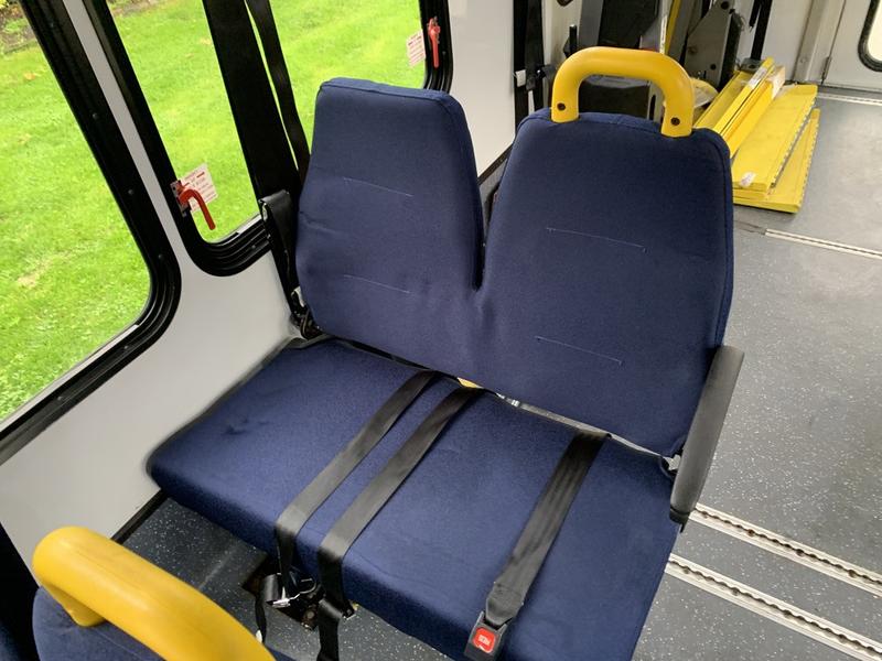 2015 Chevrolet Express G4500 11 Passenger Wheelchair Accessible Shuttle Bus, 6.0L, 8 cylinder, 2 door, automatic, RWD, cruise control, AM/FM radio, power door locks, white exterior, blue interior.