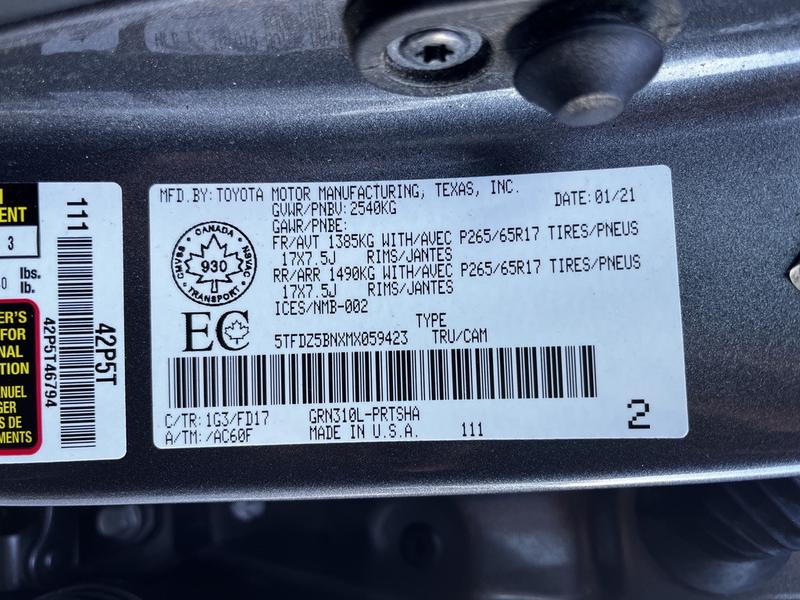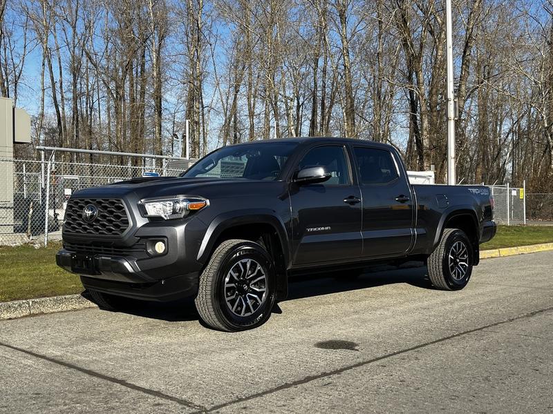 2021 Toyota Tacoma SR5 Double Cab 4WD, 3.5L, 4 door, automatic, 4WD, 4-Wheel ABS, cruise control, air conditioning, AM/FM radio, power windows, power mirrors, grey exterior, black interior.