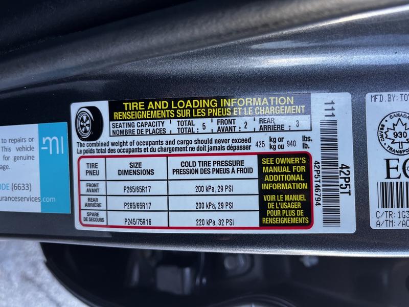 | Tires: | P245/75R16 |
