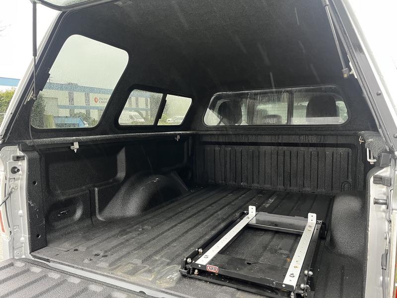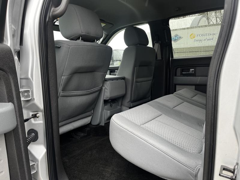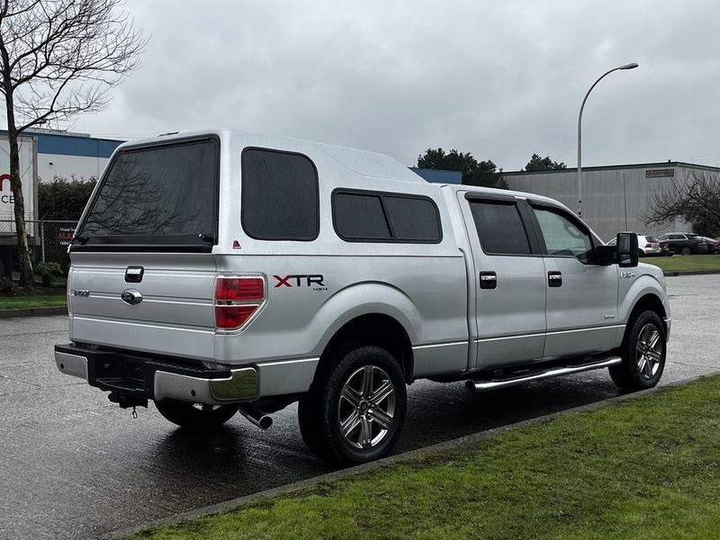 2014 Ford F-150 XLT SuperCrew 4WD with Canopy, 3.5L, 6 cylinder, 4 door, automatic, 4WD, 4-Wheel ABS, cruise control, air conditioning, AM/FM radio, CD player, power door locks, power windows, power mirrors, silver exterior, grey interior, cloth, towing preparation package with tow hitch receiver, trailer brake and tow/haul mode, steering wheel controls, running boards.