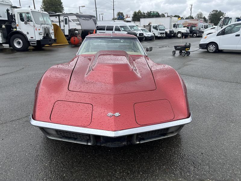 1970 Chevrolet Corvette Stingray, V8 not stock engine, headers, 5 speed manual transmission, red exterior, gold interior, leather. (Mileage is unverified)