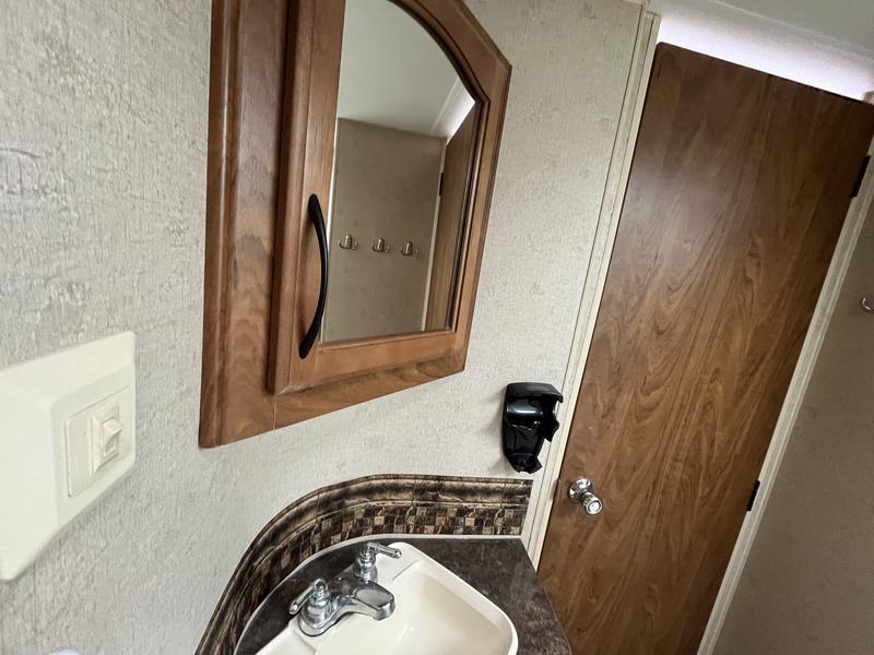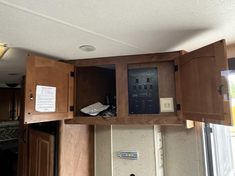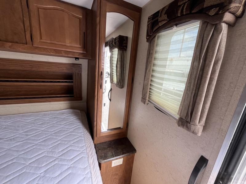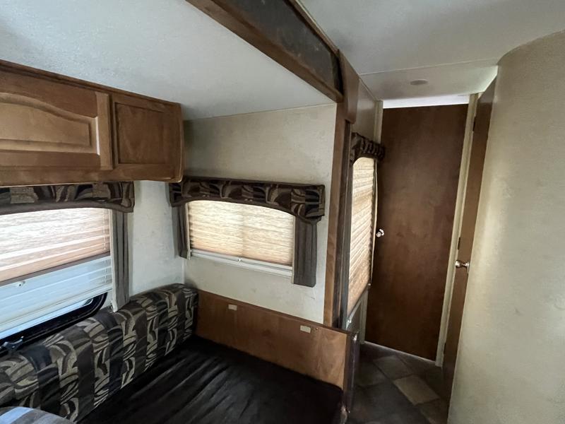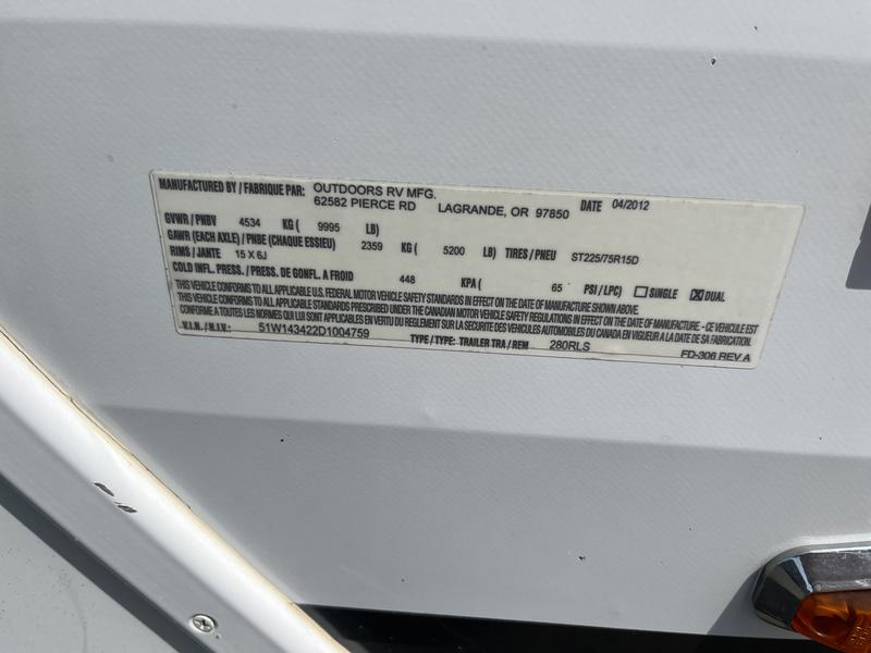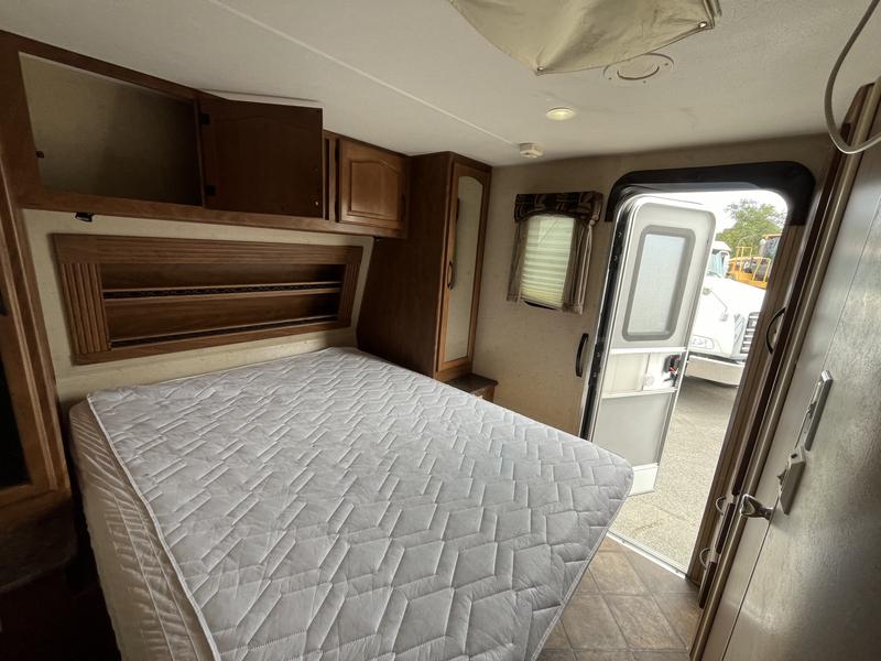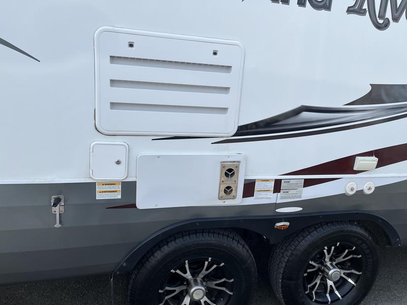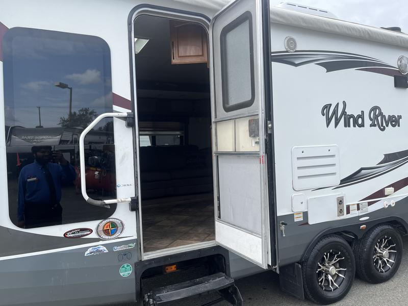 2013 Outdoor Wind River 29 Foot Travel trailer With 2 Slides Out, 2 door, air conditioning, AM/FM radio, sleeps 4, 3 burner stove , microwave, queen size bed, white exterior, tan interior. Dry Hitch 1080 lbs,