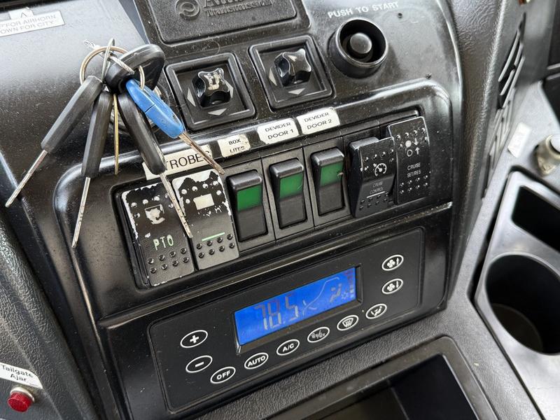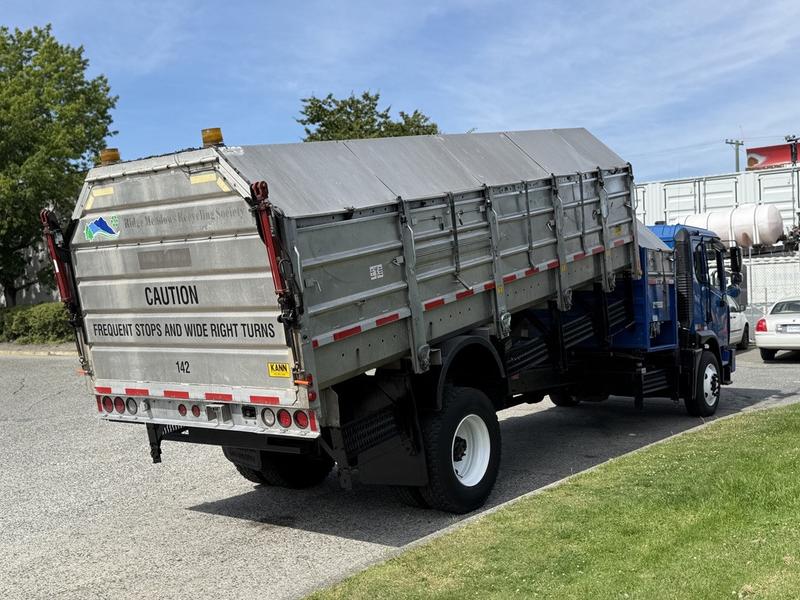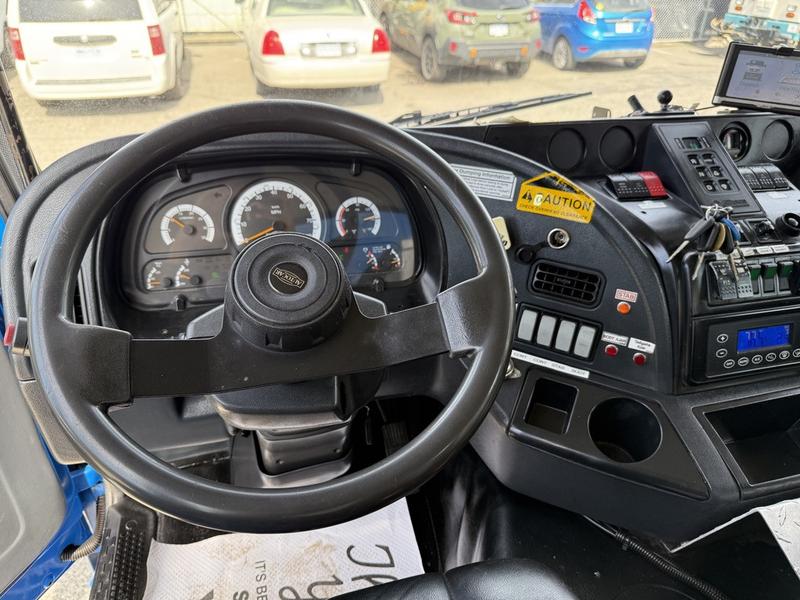 2017 Autocar Xpert Recycling Dump Truck Diesel, 6.7L, 6 cylinder, 2 door, automatic, RWD, blue exterior, black interior, vinyl. Grey dump measurements: 19 foot 5" long, 8 foot wide, 6 foot 6" high. Certification and decal valid until June 2026. Cummins ISB, Allison 3500 6-speed transmission, PTO, air brakes, left-hand drive & right-hand drive.