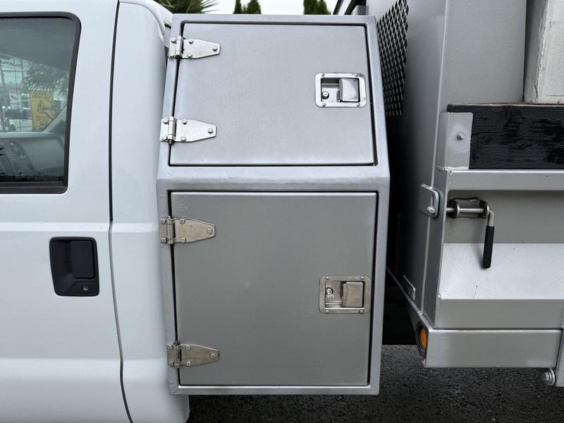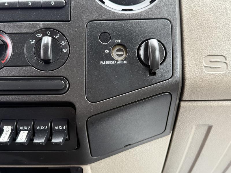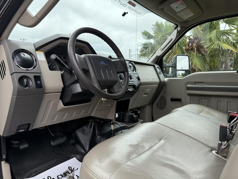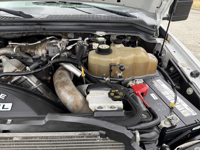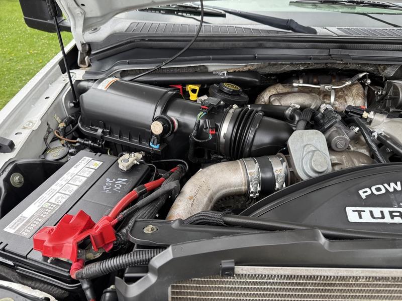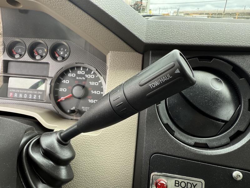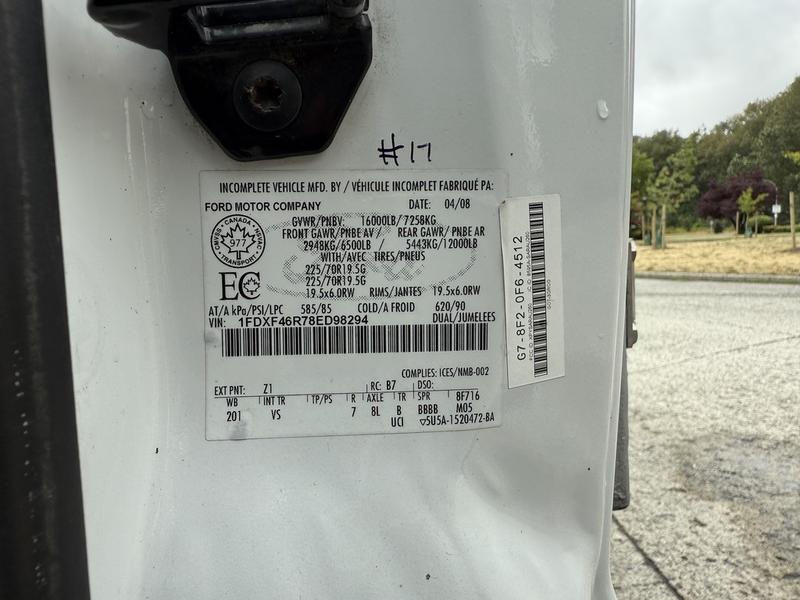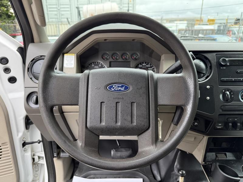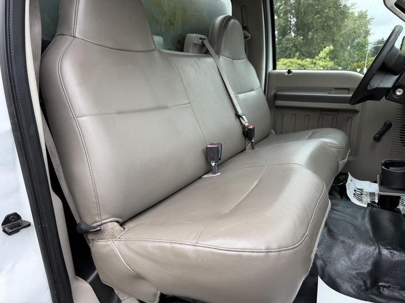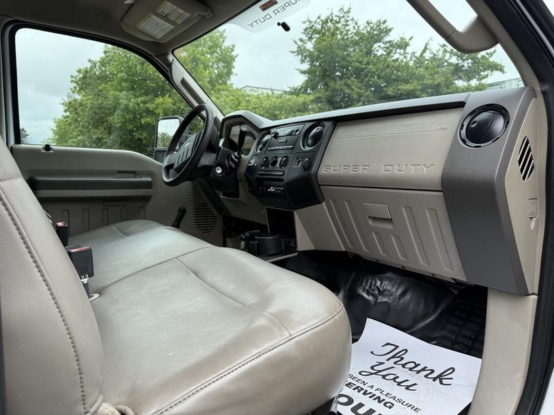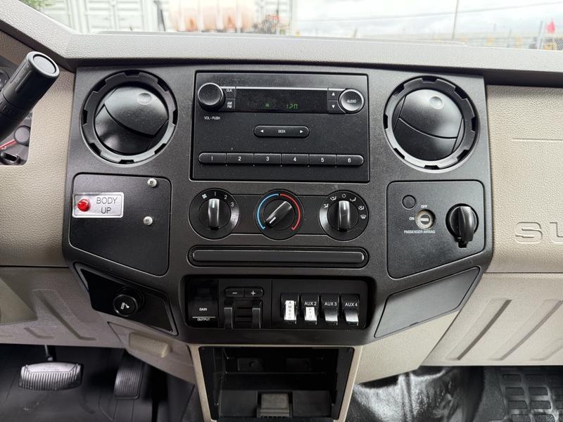 2008 Ford F-450 SD Regular Cab Dually Diesel with 10-Foot Dump Box, 6.4L, 8 cylinder, 2 door, automatic, RWD, AM/FM radio, white exterior, tan interior, leather. Trailer brake controller, tow/haul mode, AUX switch panel, PTO, trailer hitch receiver. Box dimensions: 10' L x 7.5' W x 6' H. Certification and decal valid until June 2026.