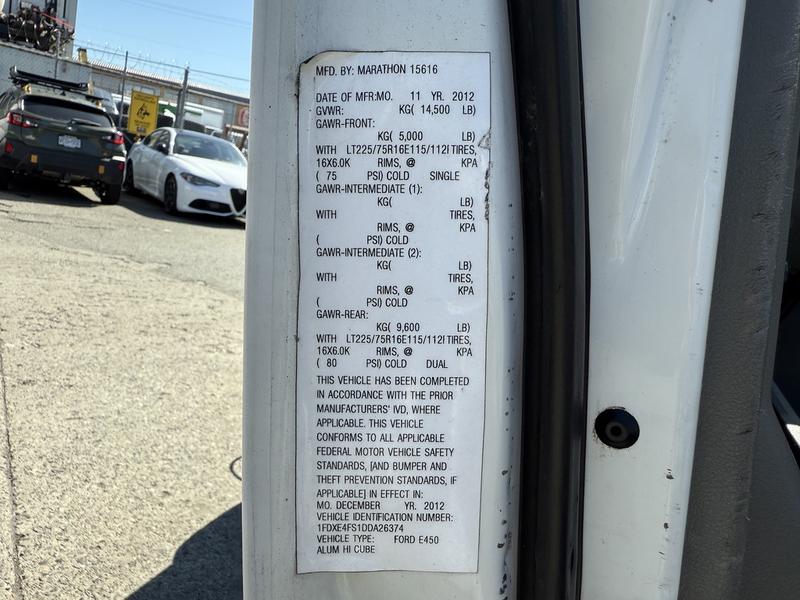 2013 Ford Econoline E450 16-Foot Cube Van with Video Pipeline Inspection Equipment, 6.8L, 10 cylinder, 2 door, RWD, air conditioning, AM/FM radio, white exterior, grey interior, vinyl. Traffic signaler, hose reel, air compressor, camera/tractor controller, office with ventilation, camera control, backup camera, Cummins 7HGJAE-2132L gas generator 120V 7kW.