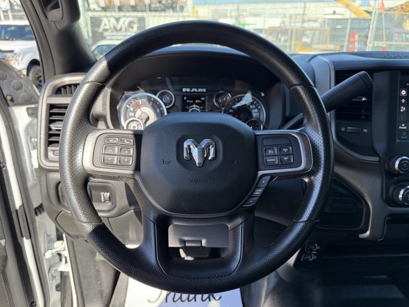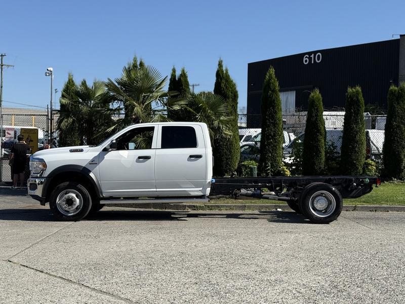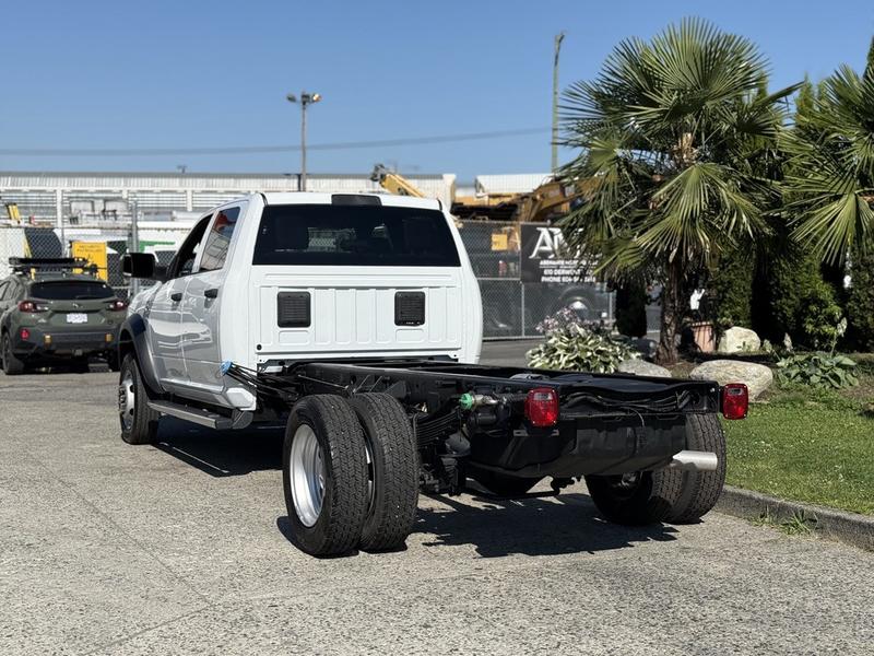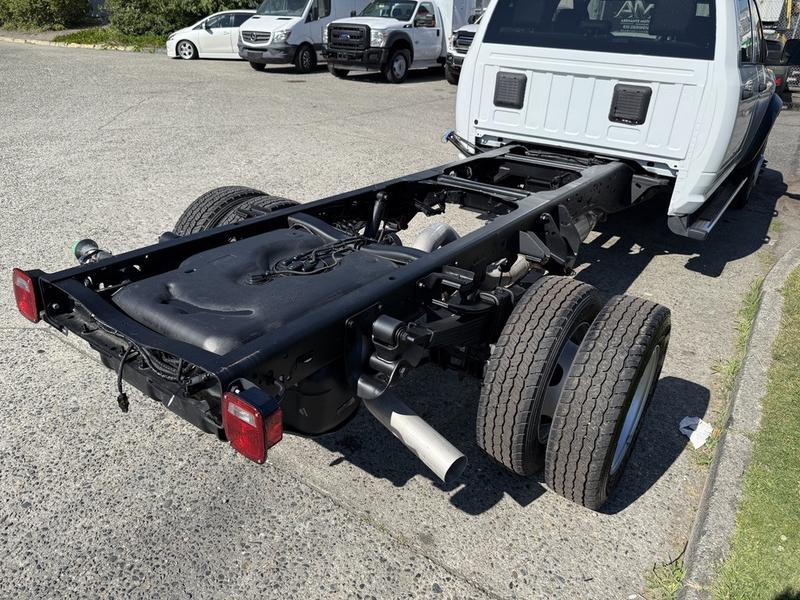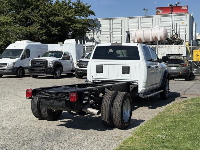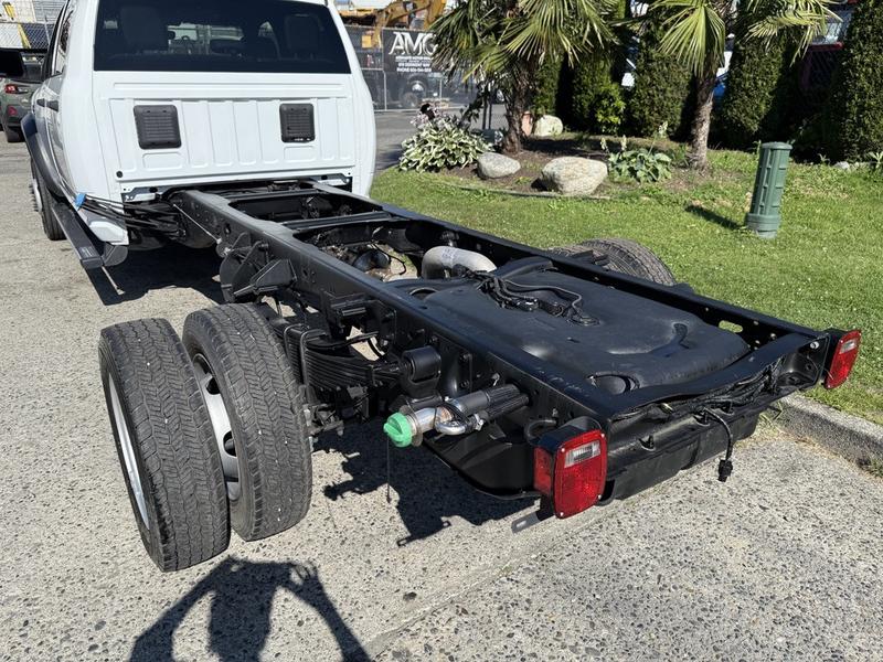 2022 RAM 5500 Crew Cab Dually Diesel Cab & Chassis 4WD, 6.7L, 6 cylinder, 4 door, automatic, 4WD, cruise control, air conditioning, AM/FM radio, power door locks, power windows, power mirrors, white exterior, grey interior, leather. Center of the rear wheel to the end of the frame is 53 Inches. Center of the rear wheel to the back of the cab is 84 Inches.