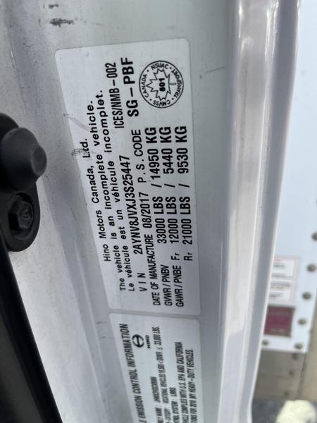 2018 Hino 338 Cube Van 26 foot Box Power Tailgate Diesel Air Brakes, 7.6L L6 DIESEL engine, automatic, white exterior, gray interior. Certification and Decal Valid to July 2026