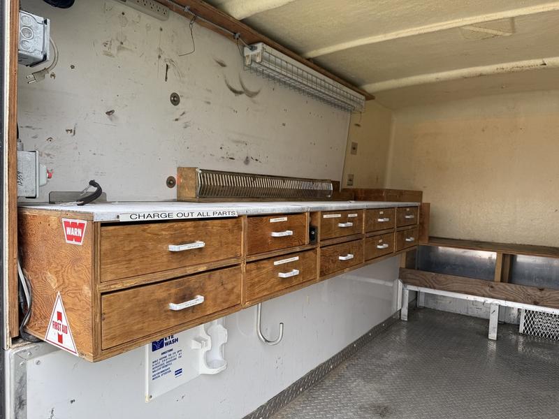 2008 Ford F-450 SD Regular Cab Dually Diesel 2WD Service Truck Mobile Workshop, 6.4L, 8 cylinder, 2 door, automatic, RWD, air conditioning, AM/FM radio, CD player, power door locks, power windows, power mirrors, white exterior, tan interior, cloth. Aftermarket backup camera, AUX switch panel. Certification and decal valid until June 2026.