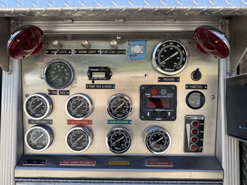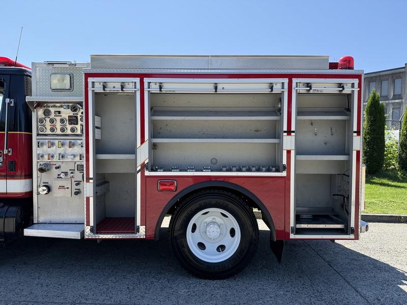 1991 International 4600 HALE Pumper Firetruck, 7.3L, 8 cylinder, 2 door, automatic, 4X2, cruise control, air conditioning, AM/FM radio, red exterior, black interior, leather. Certification and Decal valid until January 2026.