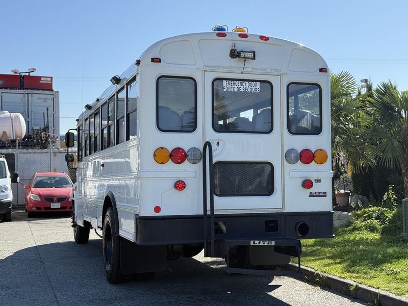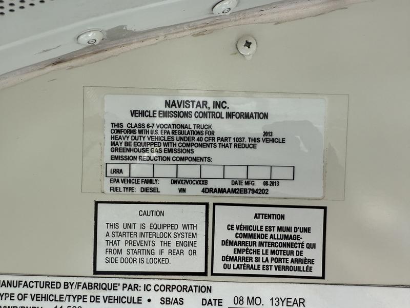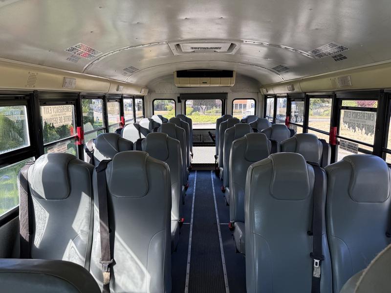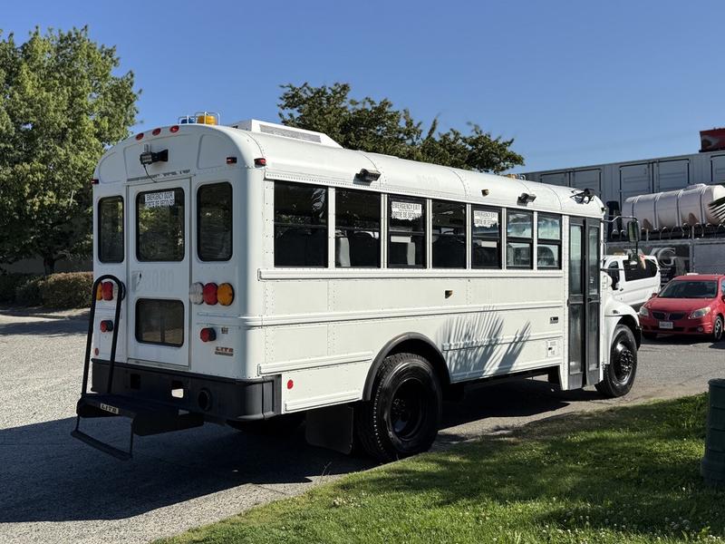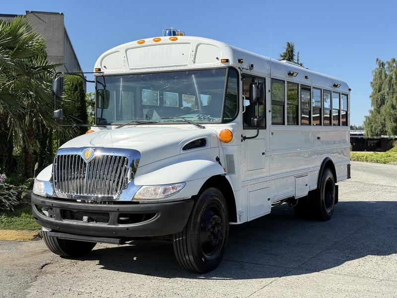 2014 International 4200 21-Passenger Diesel Bus with Seatbelts, 7.6L, 6 cylinder, 2 door, automatic, RWD, white exterior, grey interior, vinyl. Certification and decal valid until Feb 2026.