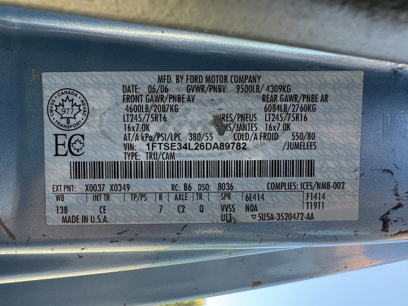 2006 Ford Econoline E-350 Cargo Van with Versalift Bucket, 5.4L, 8 cylinder, 3 door, automatic, RWD, 4-Wheel ABS, AM/FM radio, CD player, blue exterior, grey interior, cloth. Versalift VT28B 29' height, Go Power 1500W inverter, Alpine IVA-W205 head unit, beacon lights.
