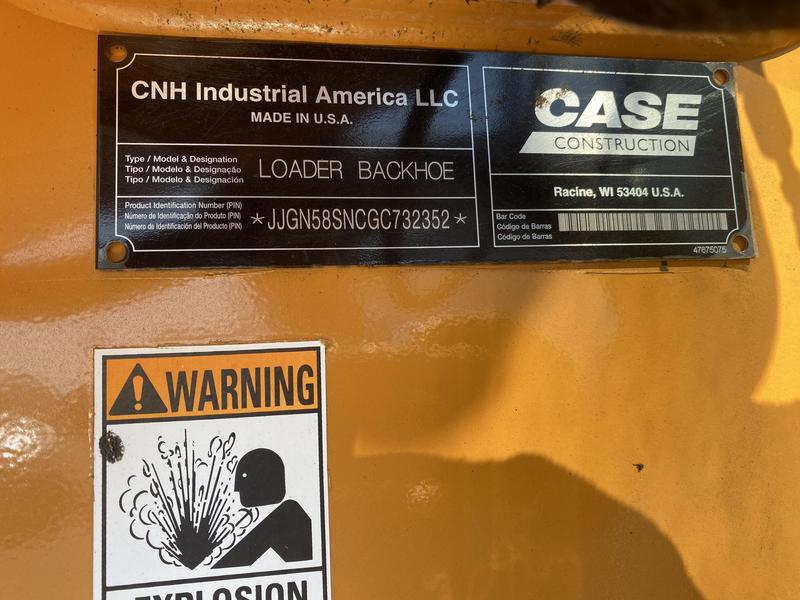 2016 Case 580 Super N Backhoe Front end Loader 4 Wheel Drive Diesel, rear stabilizer, yellow exterior, black interior, vinyl, 4316 hr. This listing is a former municipality asset.