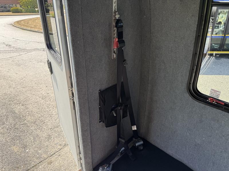 2013 Ford Econoline E-350 Super Duty 13-Passenger Wheelchair Lift Bus, 5.4L, 8 cylinder, 4 door, automatic, RWD, 4-Wheel ABS, air conditioning, AM/FM radio, CD player, power door locks, white exterior, blue interior, vinyl. BRAUN 800lb wheelchair lift, backup camera, PA system, Intermotive interlock/high idle. Certification and decal valid until January 2026.
