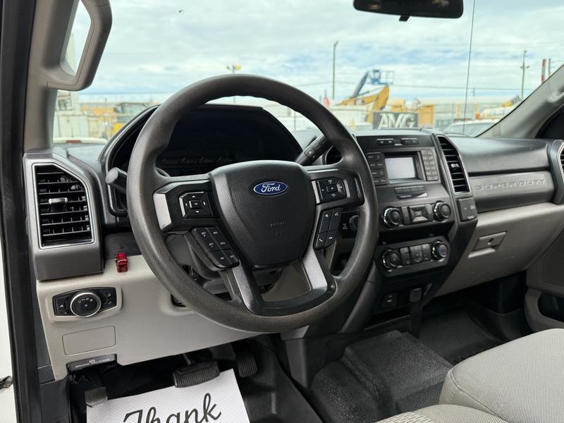 2019 Ford F-350 SD XLT SuperCrew 8-Foot Flat Deck Diesel 4WD, 6.7L, 8 cylinder, 4 door, automatic, 4WD, 4-Wheel ABS, cruise control, air conditioning, AM/FM radio, power door locks, power windows, power mirrors, white exterior, grey interior, cloth. Certification and decal valid until July 2026.