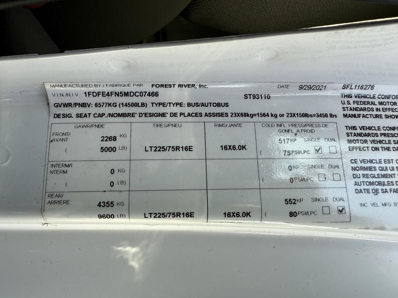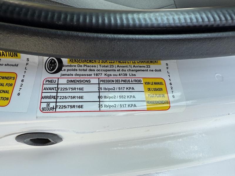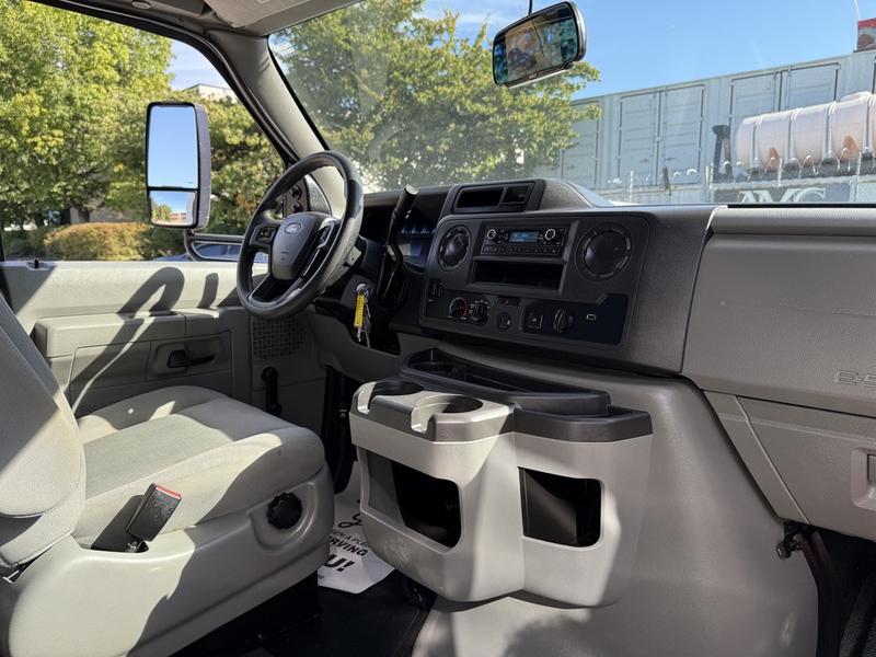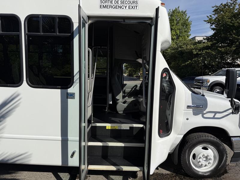 2021 Ford Econoline E450 23-Passenger Bus, 7.3L, 8 cylinder, 2 door, automatic, RWD, air conditioning, AM/FM radio, white exterior, grey interior, cloth. 23 Passenger including driver. Certification and decal until January 2026.