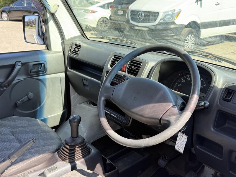 2009 Suzuki Carry JDM Kei Pickup Truck 4WD Right Hand Drive, 3 Cylinder, 3 cylinder, 2 door, manual, 4WD, air conditioning, AM/FM radio, white exterior, grey interior.