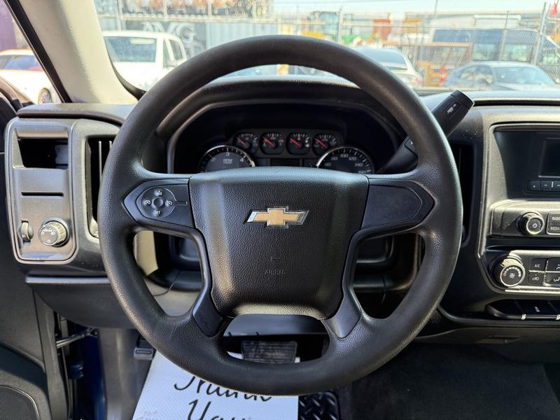2017 Chevrolet Silverado 1500 Flat Deck 6 feet 8 inches Crew Cab 2WD, 4.3L, 6 cylinder, 4 door, automatic, RWD, 4-Wheel ABS, AM/FM radio, blue exterior, gray interior, cloth.