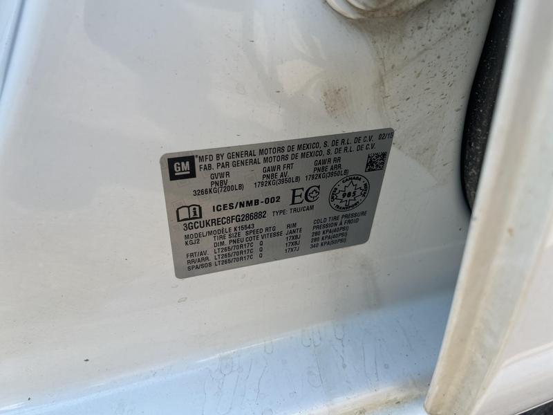 2015 Chevrolet Silverado 1500 LT Crew Cab 4WD, 5.3L, 8 cylinder, 4 door, automatic, 4WD, 4-Wheel ABS, cruise control, AM/FM radio, power door locks, power windows, power mirrors, white exterior.