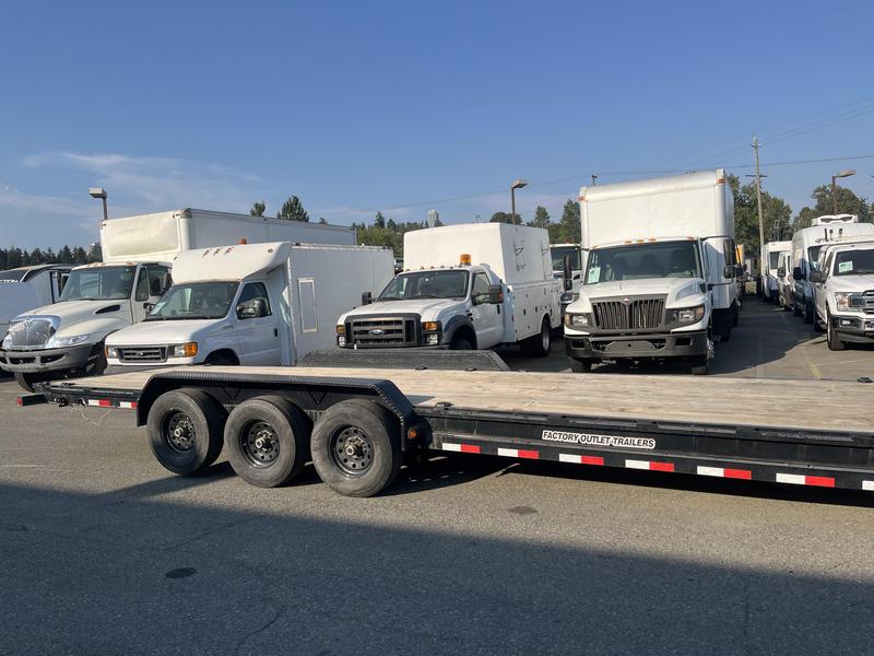 This 2020 Load Trail 28-Foot Gooseneck Triple Axle Flat Deck Trailer is available now in Burnaby, BC. Featuring a durable black steel frame, 28 ft deck, 8 ft upper deck, and 7 ft width, it’s designed for hauling heavy loads with stability and reliability. Perfect for contractors, haulers, and equipment transport.
