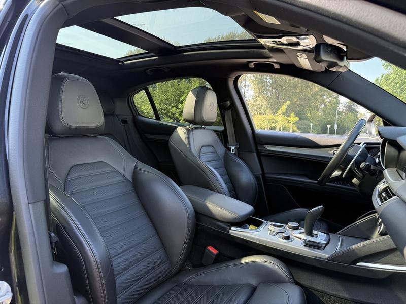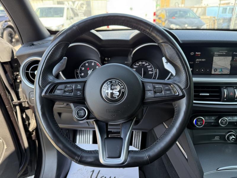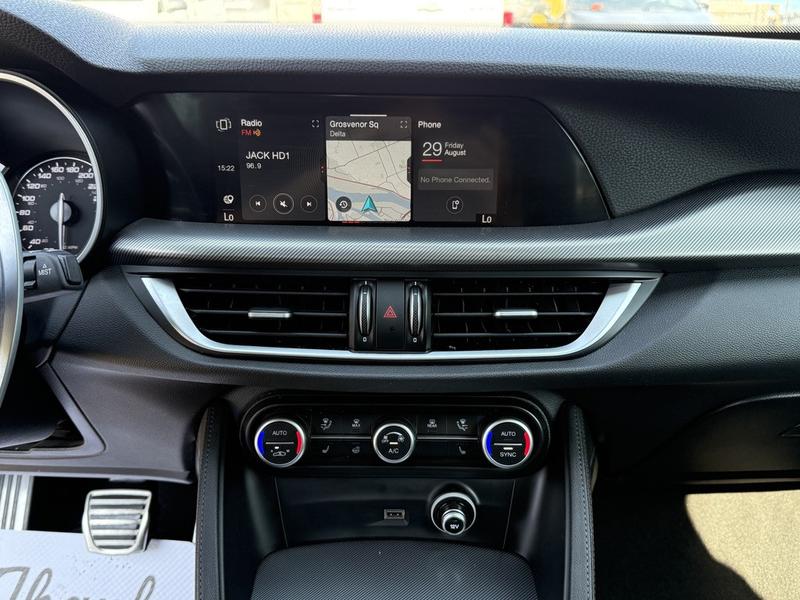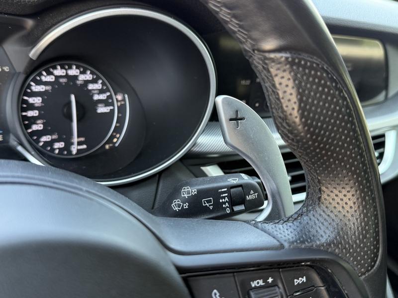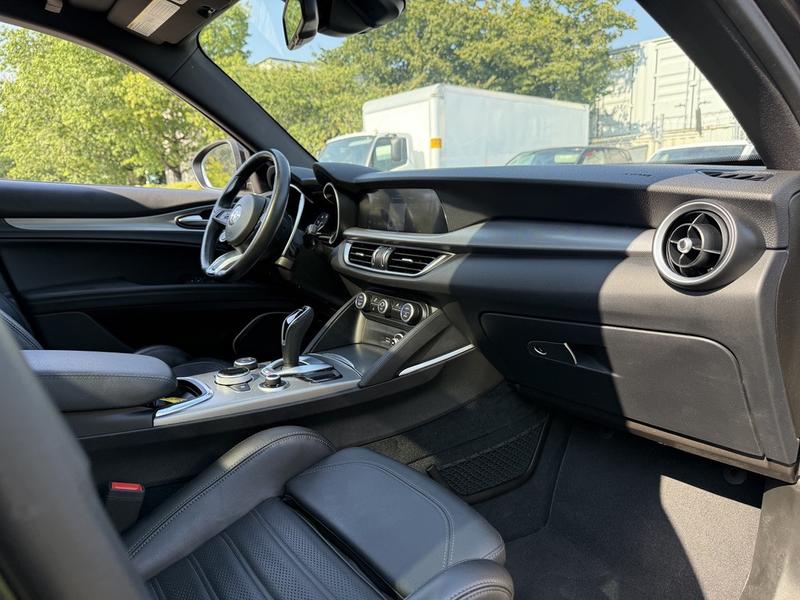 2020 Alfa Romeo Stelvio Q4 AWD, 2.0L, 4 cylinder, 4 door, automatic, AWD, 4-Wheel ABS, cruise control, air conditioning, AM/FM radio, power door locks, power windows, power mirrors, white exterior, black interior, leather. Heated seats, backup camera, wireless charging, paddle shifters. Overall vehicle measurements: 15'8" L x 6'3" W x 5'5" H.