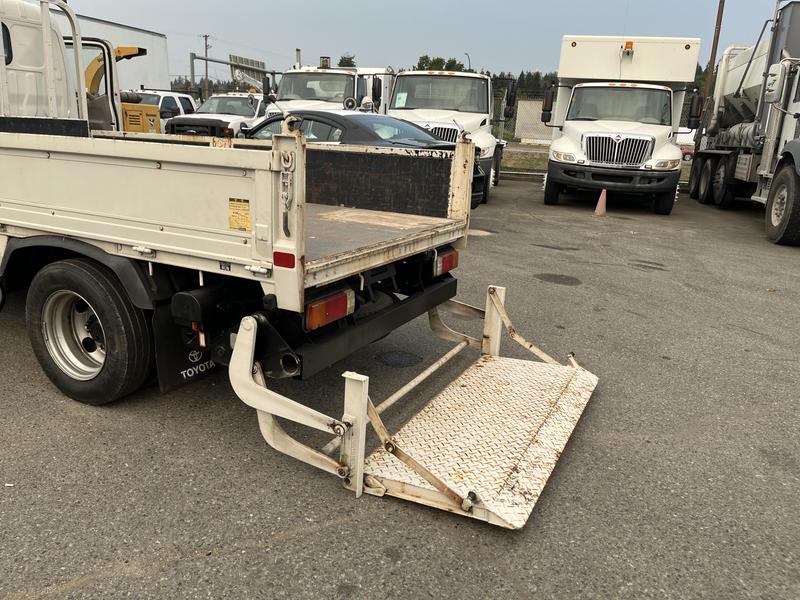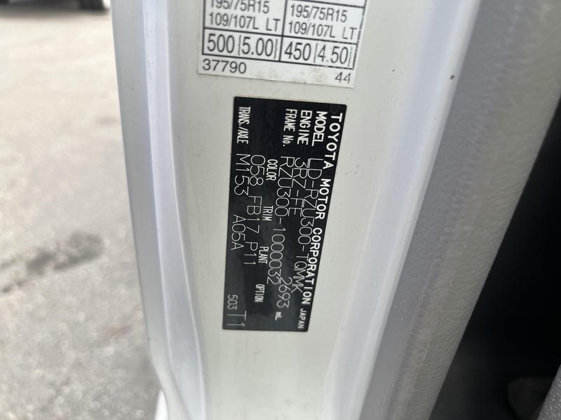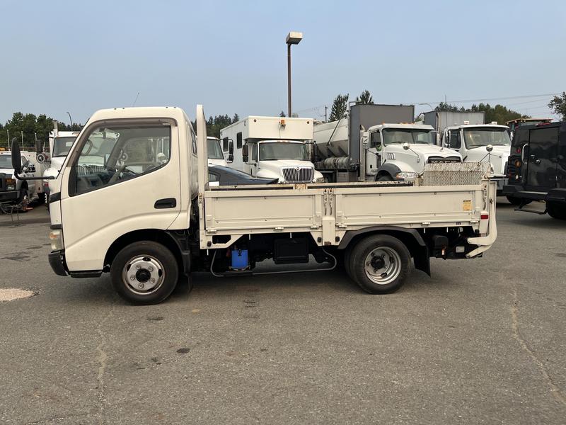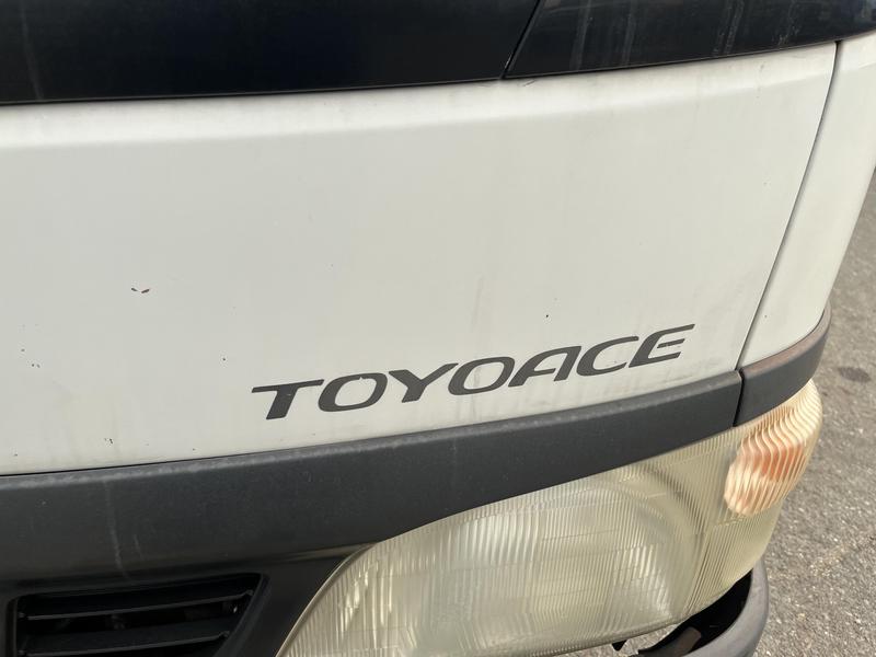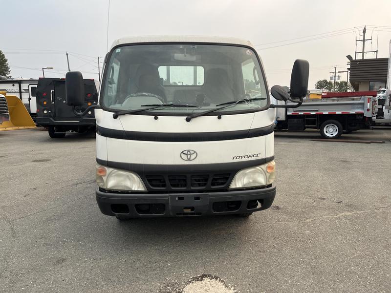 2005 Toyota Toyoace Right hand Drive, Gas engine, Dual Rear wheels, 3 passenger, 4 cylinder, manual transmission with rear power tailgate, white exterior. Deck Dimension Length 10 Feet, Width 5 Feet 3 inches.
