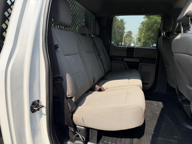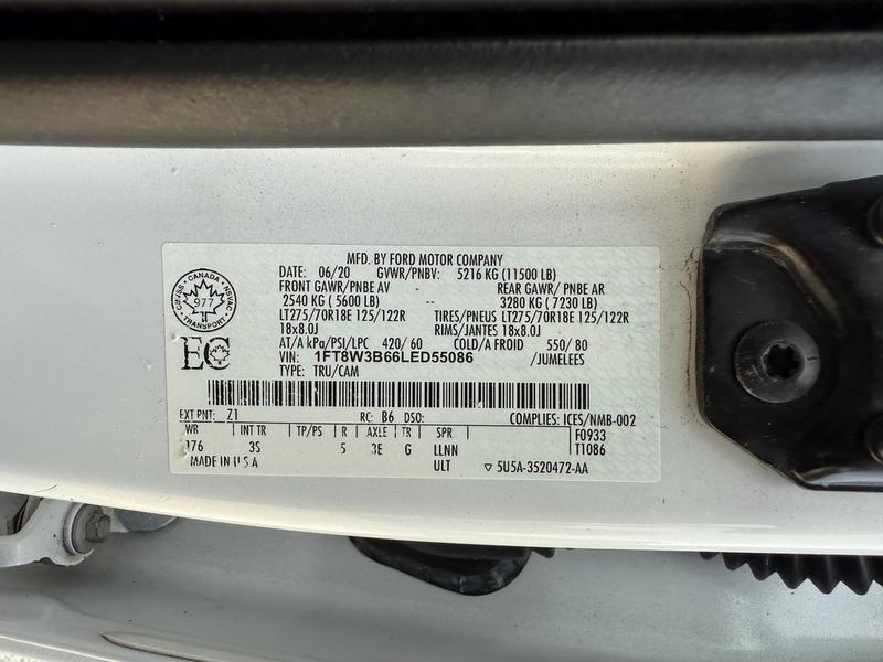 2020 Ford F-350 SD XLT 4X4 9-Foot Flat Deck Truck, 6.2L, 8 cylinder, 4 door, automatic, 4WD, 4-Wheel ABS, cruise control, air conditioning, AM/FM radio, power door locks, power windows, power mirrors, white exterior, grey interior, cloth. Flat deck measurements: 8'10" L x 6'8" W. Overall vehicle measurements: 267" L x 84" W x 89" H. GVWR 5,216 kg / 11,500 lbs. Certification and decal valid until March 2026.