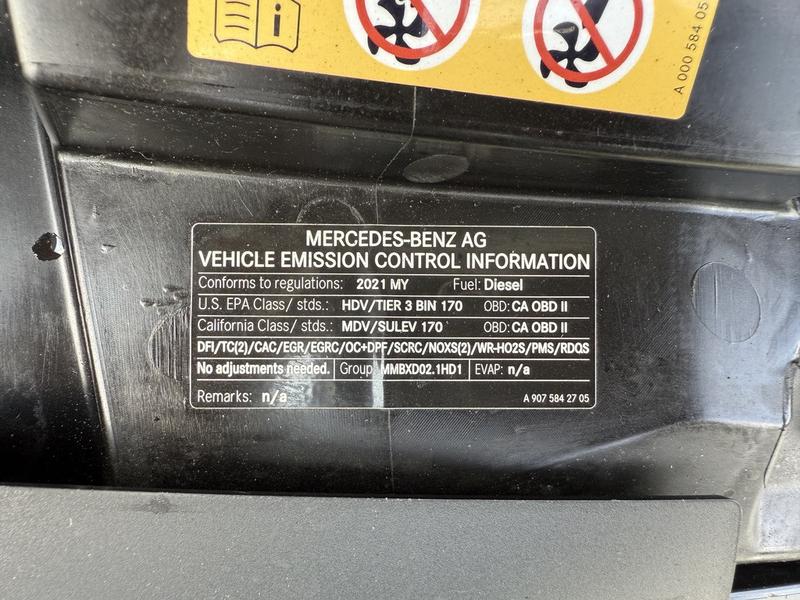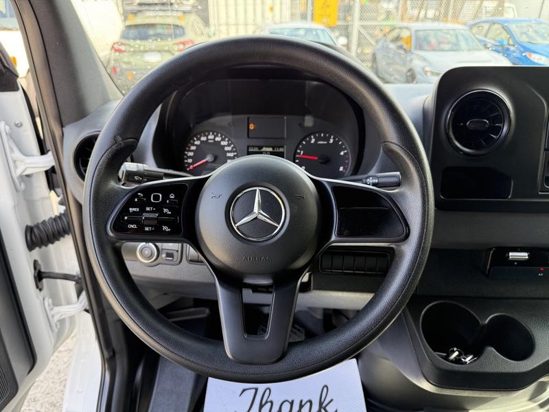 2021 Mercedes-Benz Sprinter 2500 Low Roof Diesel Cargo Van, 2.2L, 4 cylinder, 2 door, automatic, 4X2, cruise control, air conditioning, AM/FM radio, power door locks, power windows, power mirrors, white exterior, black interior, cloth. Push button start, backup camera. Overall vehicle measurements: 233" L x 92" W x 96" H.