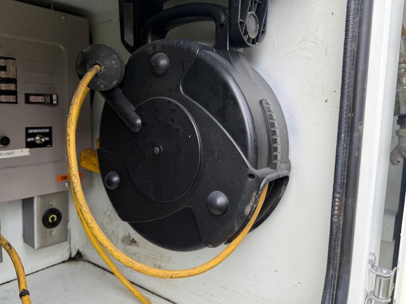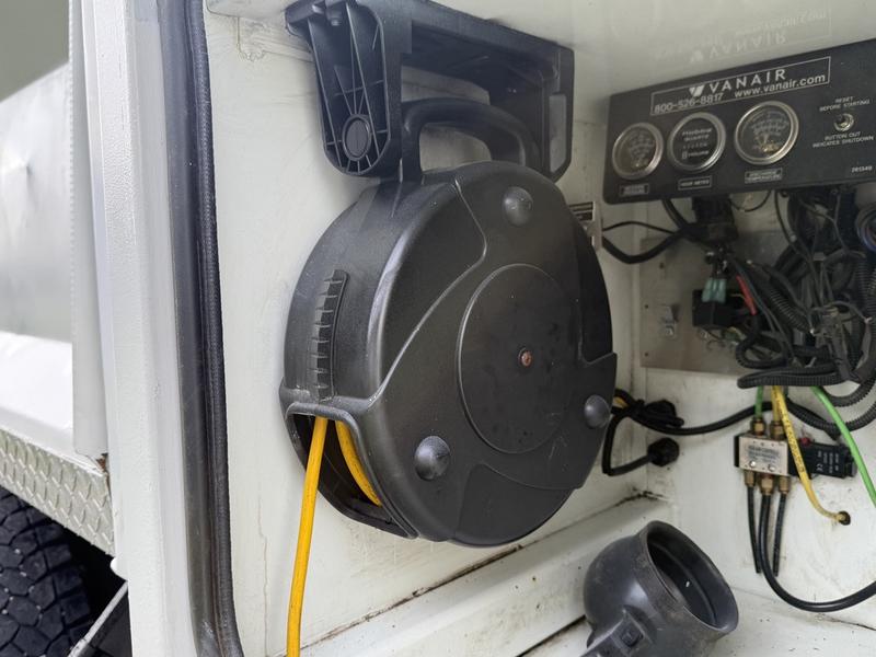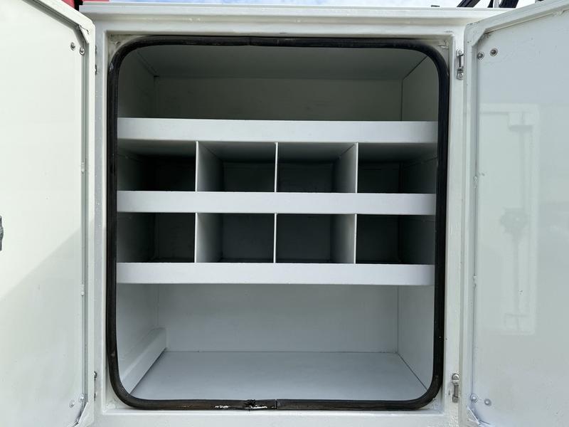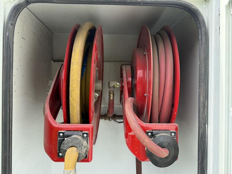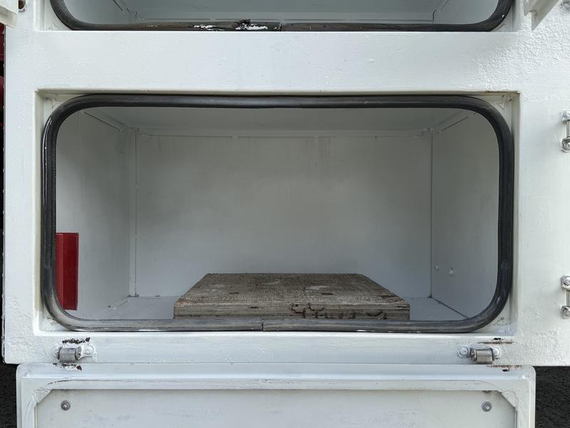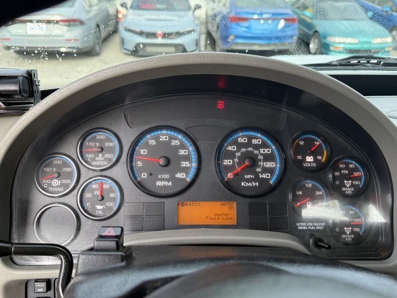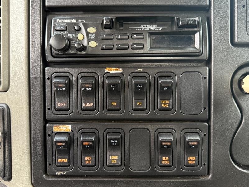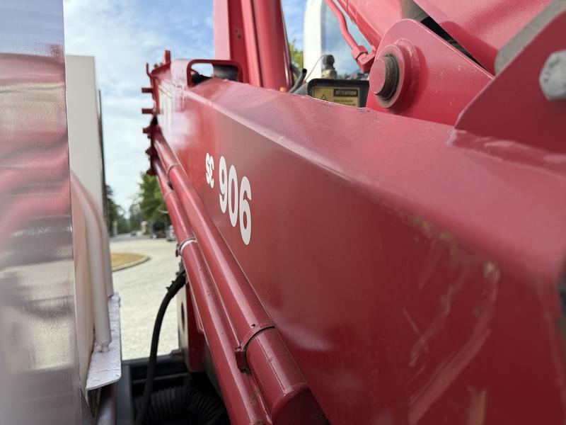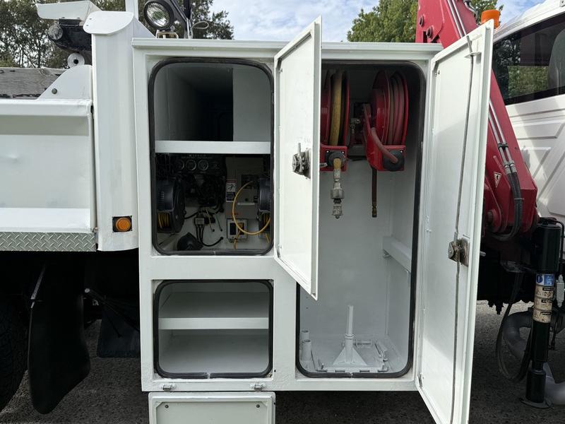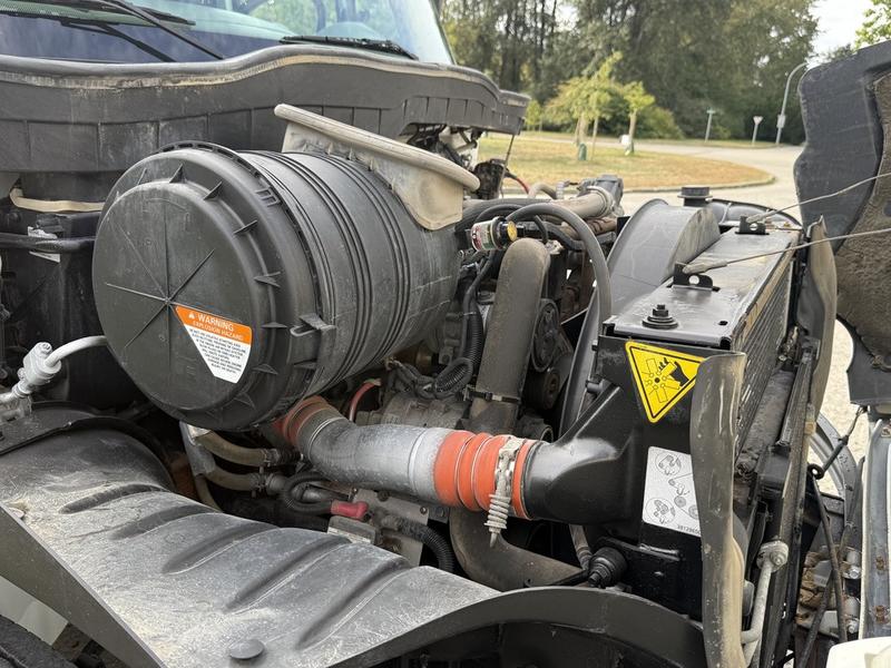 2008 International 4300 Diesel with Amco Veba Crane and 8-Foot Dump Box, 7.6L, 6 cylinder, automatic, 4X2, white exterior, grey interior, cloth. Equipped with air brakes. Inside dump measurements: 8'1" L x 7'7" W x 2'3" H with a 450 lb dump capacity. Overall vehicle measurements: 28'6" L x 8'7" W x 11' H. GVWR 15,422 kg / 34,000 lbs. Certification and decal valid until September 2026.
