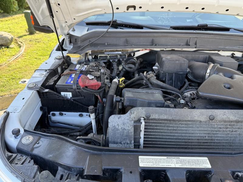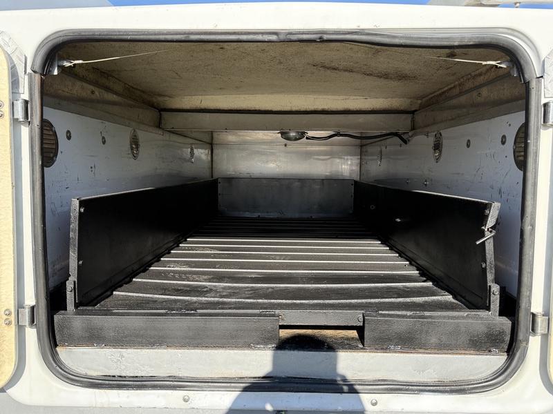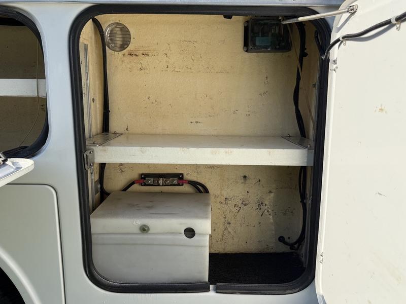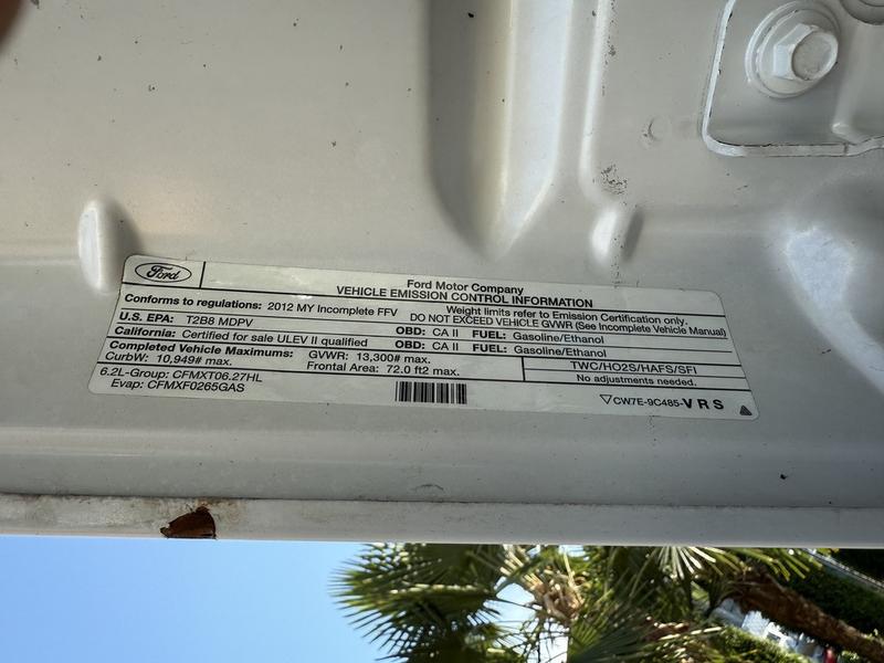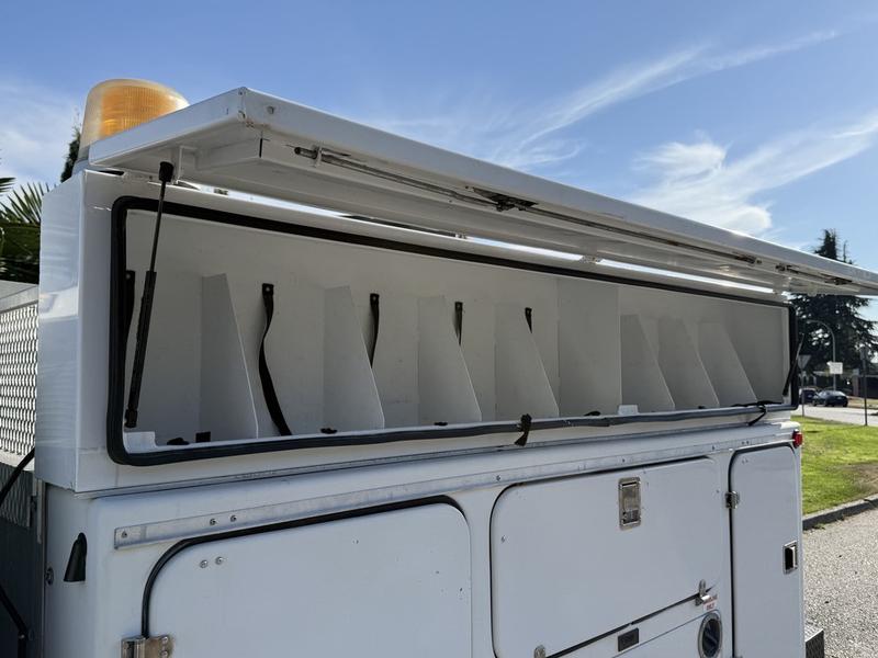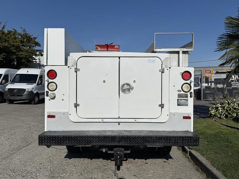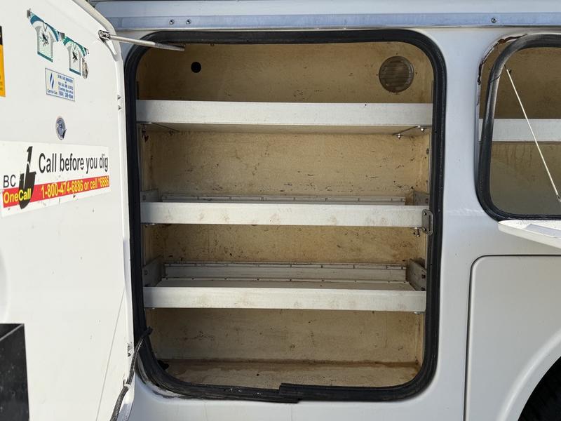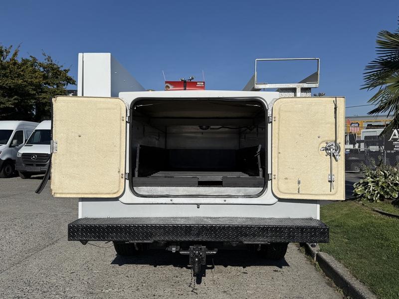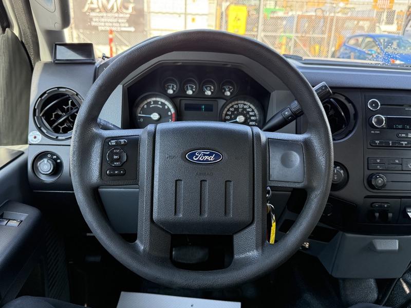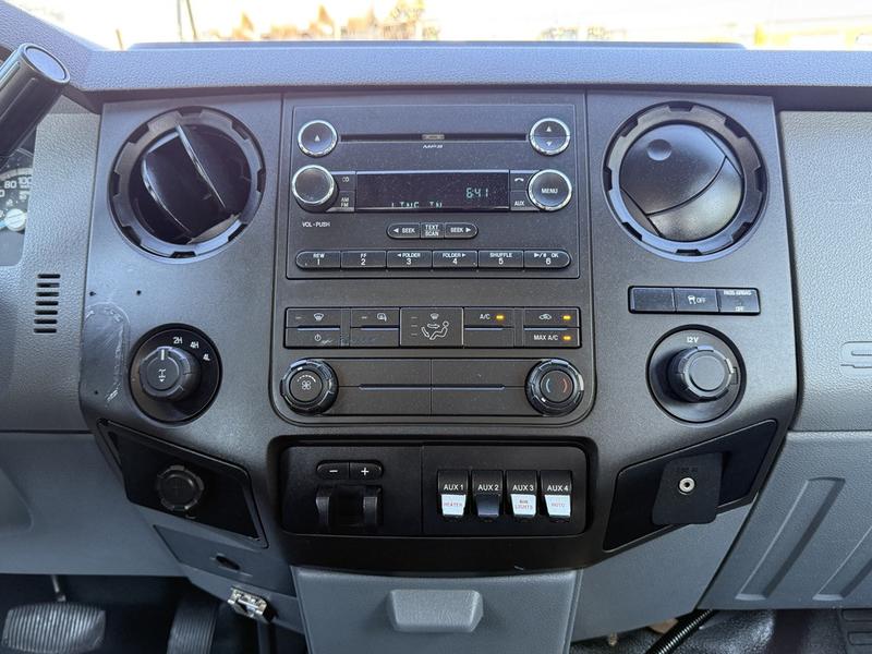 2012 Ford F-350 SD XL SuperCab 4WD Service Truck, 6.2L, 8 cylinder, 4 door, automatic, 4WD, 4-Wheel ABS, cruise control, air conditioning, AM/FM radio, CD player, power door locks, power windows, power mirrors, white exterior, grey cloth interior. Equipped with 4X4 gear selector, differential lock, radio, and heating/air conditioning. Overall vehicle dimensions are 23 feet long, 6 feet 8 inches wide, and 7 feet 6 inches high.