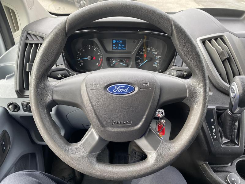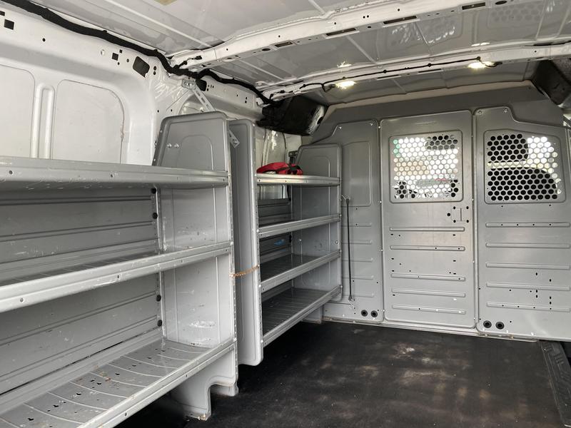 2017 Ford Transit 150 Van Low Roof Cargo Van Rear Shelving 130-inch Wheelbase, 3.7L, 6 cylinder, 2 door, automatic, RWD, 4-Wheel ABS, AM/FM radio, power door locks, power windows, white exterior, gray interior, cloth.