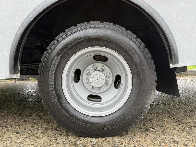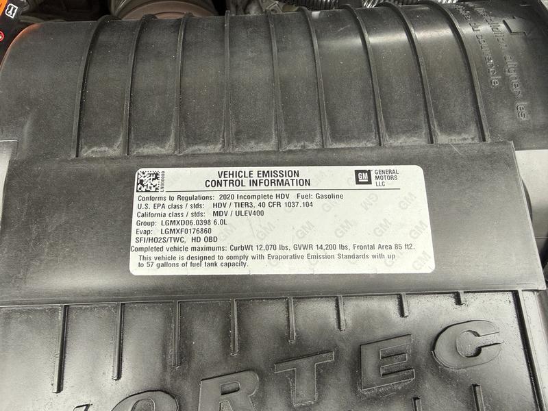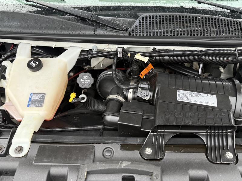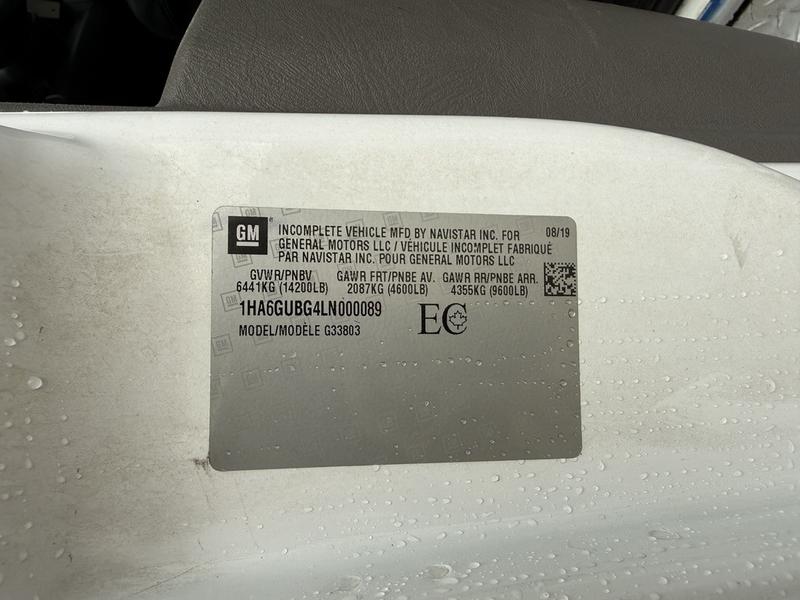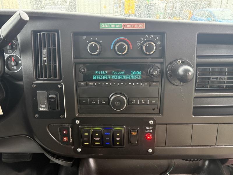 2020 Chevrolet Express 4500 22-passenger bus with wheelchair ramp, powered by a 6.0L V8 engine, automatic transmission, and rear-wheel drive. This accessible transport vehicle includes a wheelchair ramp with dedicated ramp heat and control switches, interior lighting controls, and a master body switch for simplified operation. Inside, the bus accommodates 22 passengers including the driver and is equipped with vinyl seating, rear heat and air conditioning, and an AM/FM radio. Finished in grey with a blue interior, this full-size wheelchair-accessible bus is ideal for shuttle services, care facilities, or community transport programs. Overall vehicle dimensions are 244 inches long, 79 inches wide, and 84 inches high. GVWR is 6,441 kg (14,200 lbs).