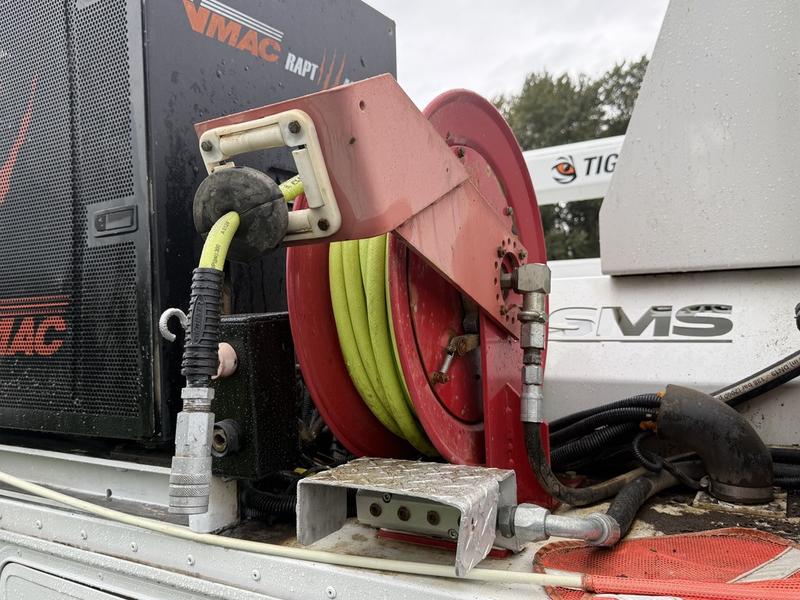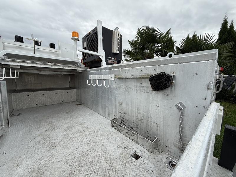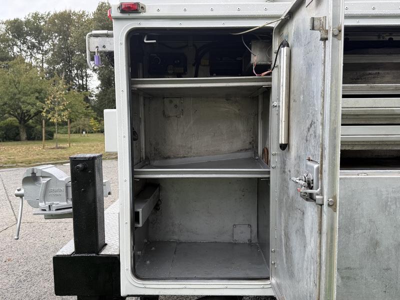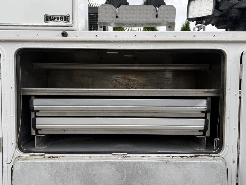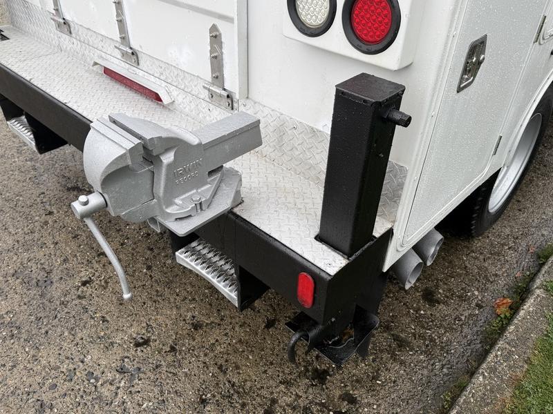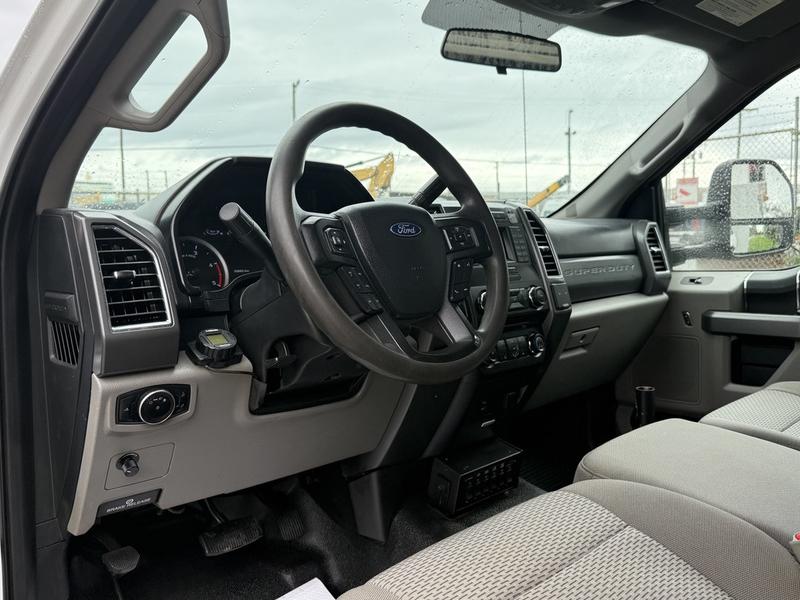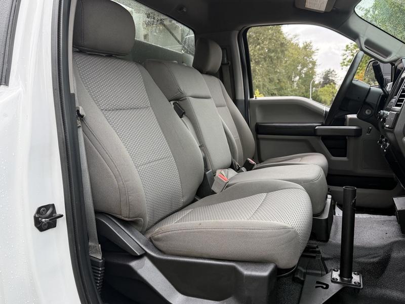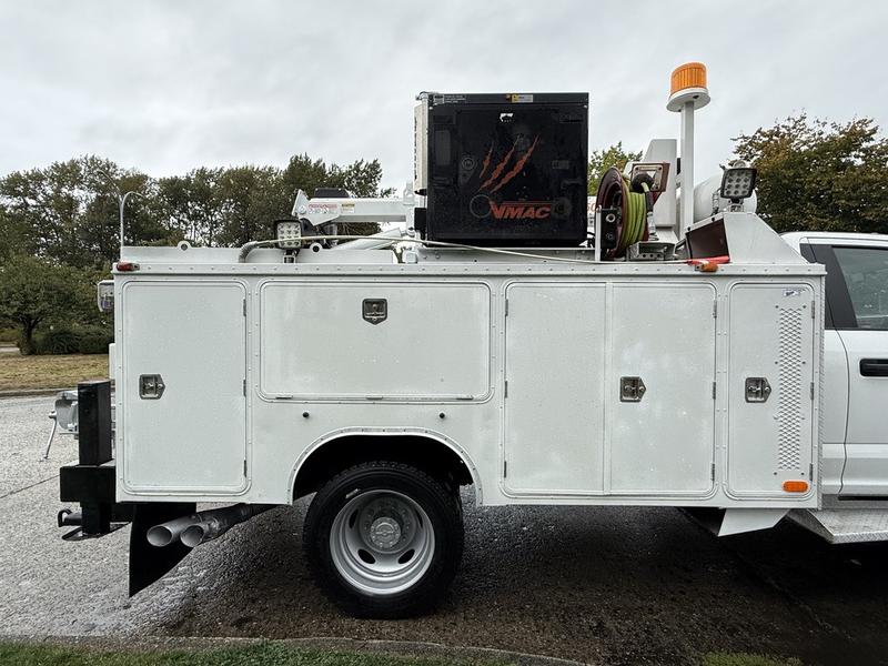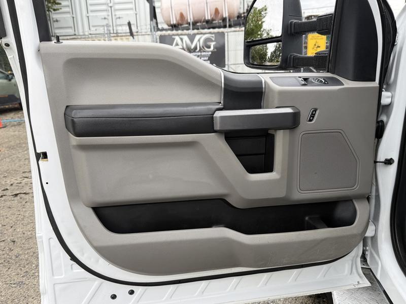 2018 Ford F-550 XLT Super Duty 4x4 Diesel Service Truck equipped with a Power Stroke 6.7L V8 engine, automatic transmission, and four-wheel drive. This heavy-duty work truck features a full service box with multiple storage compartments, a built-in compressor, and a Tiger Crane—making it ideal for field repairs, mobile servicing, and heavy-duty operations. Interior amenities include cruise control, air conditioning, AM/FM radio, power windows, power locks, and power mirrors. Finished in white with a grey cloth interior. Overall vehicle dimensions are 23 feet 7 inches long, 8 feet 8 inches wide, and 10 feet high.