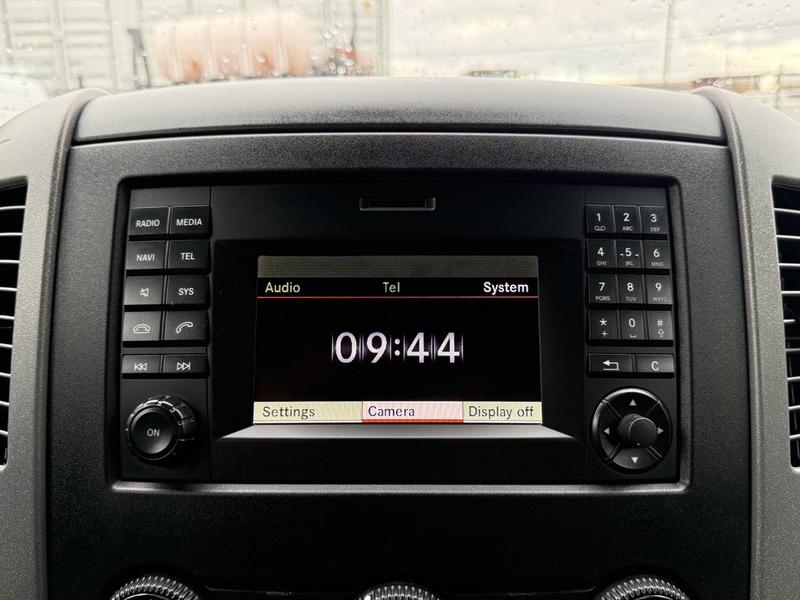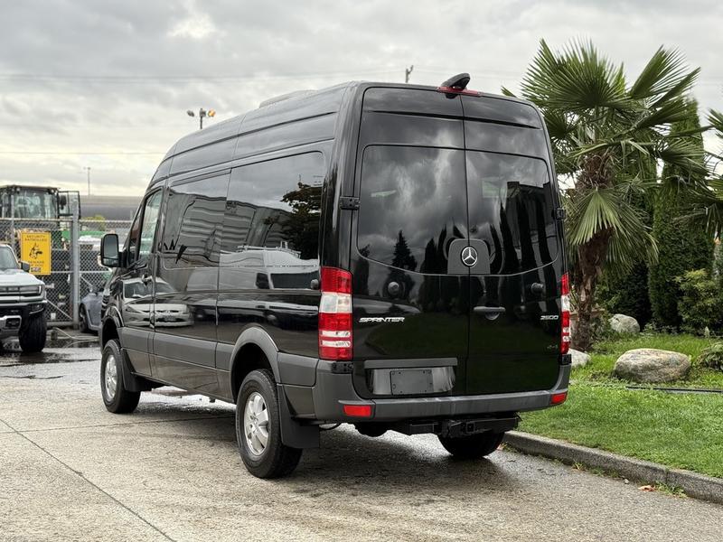 2017 Mercedes-Benz Sprinter 2500 4X4 diesel passenger van with seating for 14 including the driver. Powered by a 3.0L 6-cylinder diesel engine and equipped with a 4WD drivetrain and differential lock, this van is well-suited for transporting groups in varying road conditions. Features include a 4-door automatic transmission, backup camera, heated front seats, air conditioning, AM/FM radio, power door locks, power windows, and power mirrors. Finished in black with a matching black cloth interior, this Sprinter combines rugged capability with comfort. Ideal for shuttle services, tour operations, or crew transport.