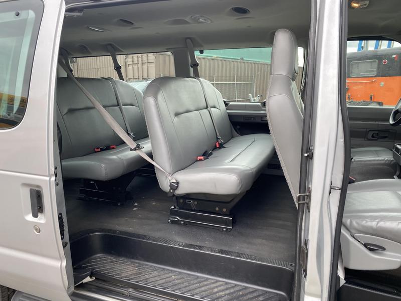 2010 Ford Econoline E-350 XL Super Duty Extended 15 Passenger Van, 5.4L, 8 cylinder, 3 door, automatic, RWD, 4-Wheel ABS, cruise control, air conditioning, AM/FM radio, CD player, power door locks, power windows, power mirrors, grey exterior, beige interior, cloth.