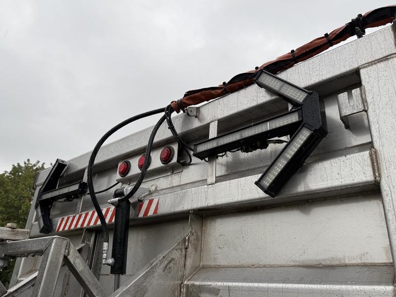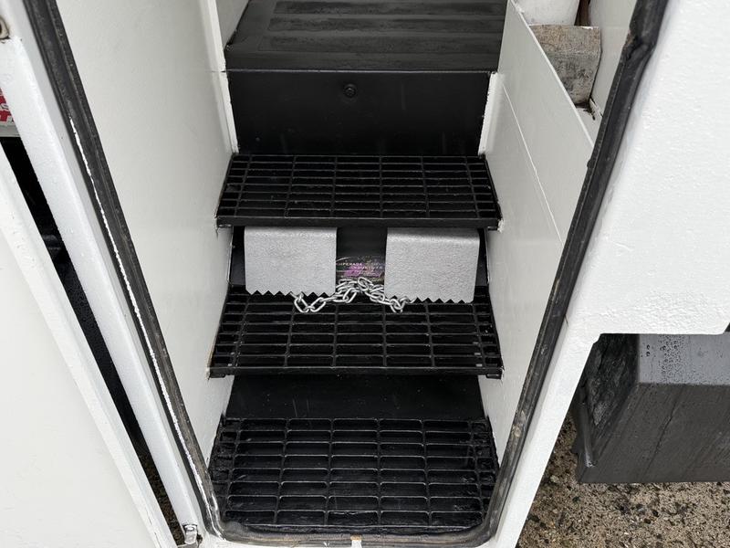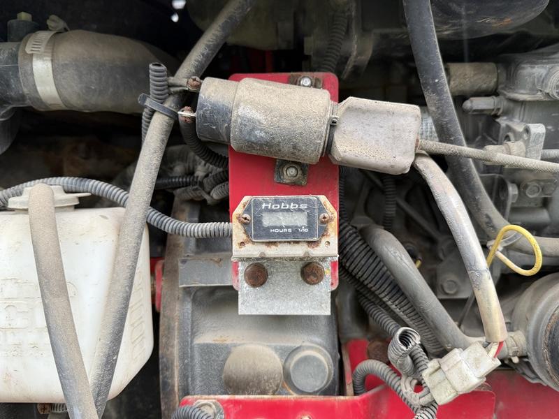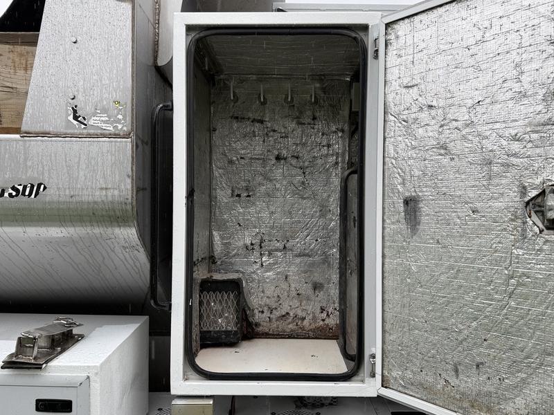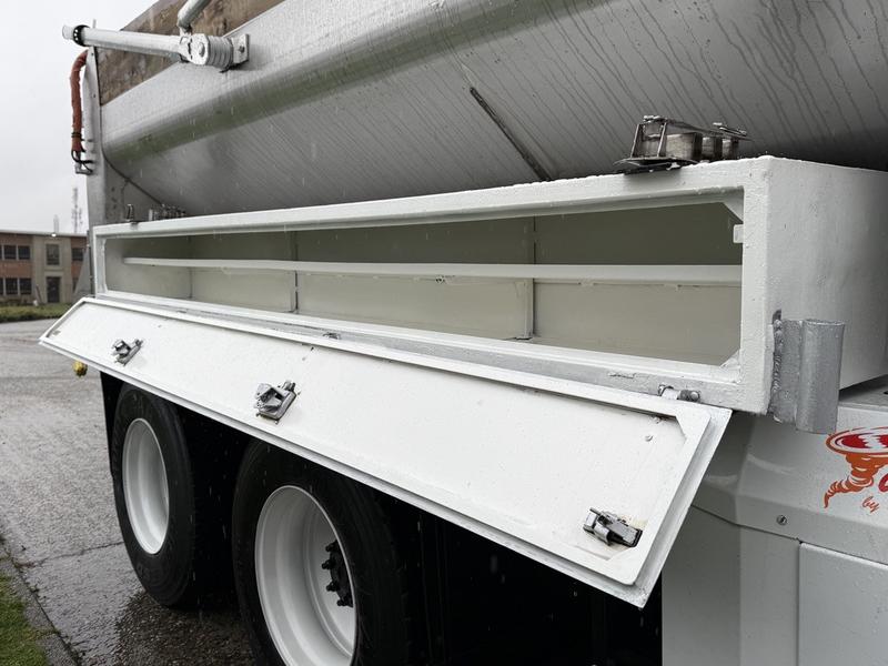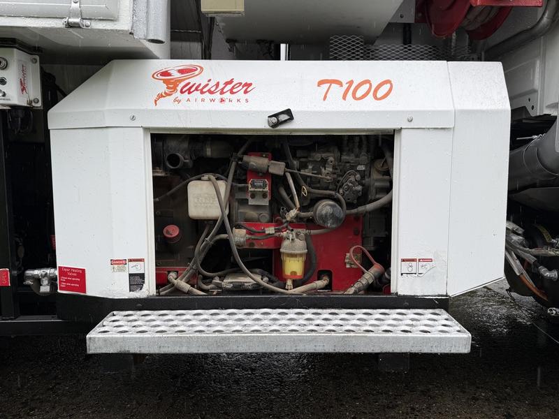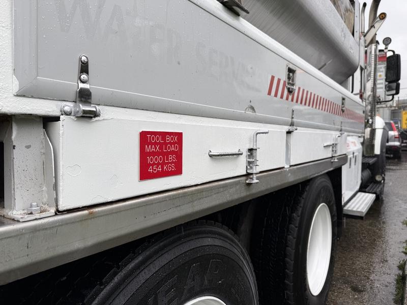2011 International 7500 tandem axle dump truck with Twister T100 sander, powered by a 9.3L diesel engine and equipped with an automatic Allison transmission. Features PTO, differential lock, trailer air supply, air suspension dump, tarp control, and multiple lighting switches including strobe, light bar, step, and rear arrow signal lights. Includes foldable side ladder for dump access, tool box compartments (1000 lb max load), interior Espar heating valves, and air brakes. The 12-foot dump box measures 7’8” wide and 4’ high. White exterior over grey cloth interior with cruise control, AM/FM radio, power windows, locks, and mirrors. GVWR 54,000 lbs. Suitable for winter or year-round municipal service.