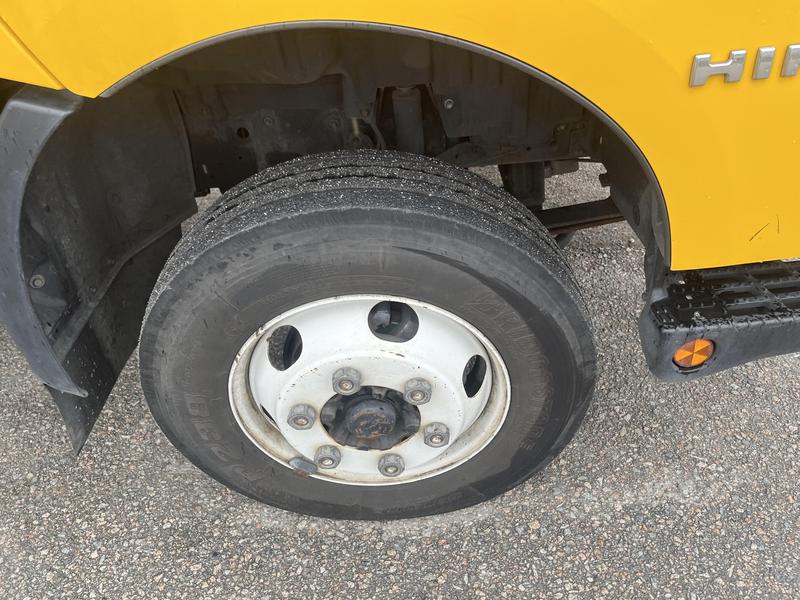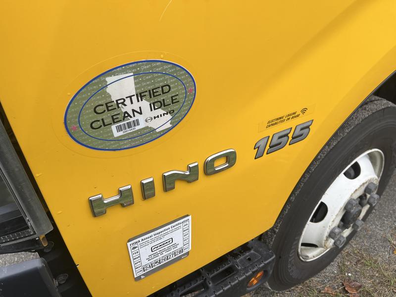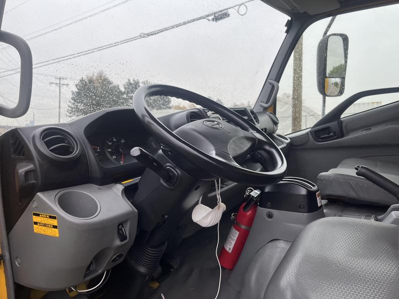 2019 Hino 155 16 Foot Cube Van Diesel With Power TailGate, 2 door, automatic, air conditioning, AM/FM radio, power windows, yellow exterior, grey interior. Certification and Decal valid until August 2026.