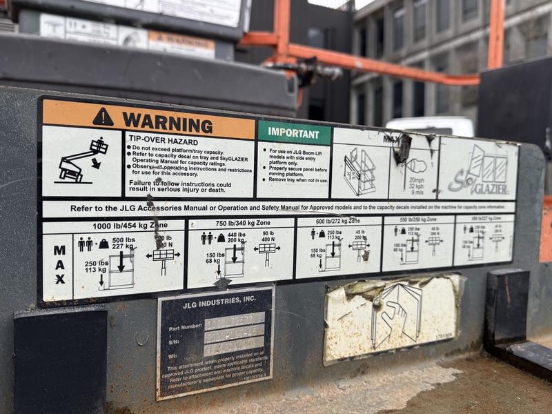 This 2012 JLG 660SJ 4WD diesel boom lift is equipped with a 2.1L 4-cylinder engine and automatic driveline, and features an orange exterior and interior. It offers a platform height of approximately 65 feet 8 inches, a 550 lb platform capacity and an operating weight of 27,000 lb. The unit measures about 33 feet 6 inches long, 7 feet 11 inches wide and 8 feet 5 inches high.
