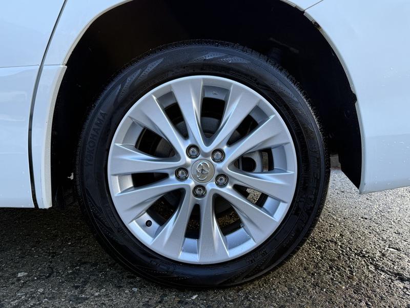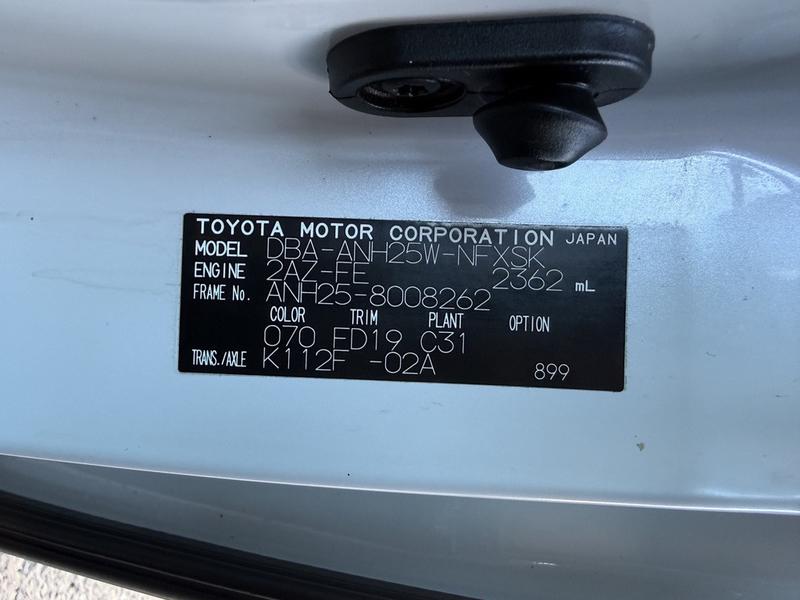 This 2009 Toyota Vellfire 2.4 AWD is a right-hand-drive Japanese import equipped with a 2.4L 4-cylinder engine, automatic transmission and all-wheel drive, and features a white exterior with a black cloth interior. It includes seating for six, power sliding door, leg rest extensions, rear air conditioning, backup camera, air conditioning and heat, AM/FM radio, and power windows, power door locks and power mirrors. The vehicle measures approximately 15 feet 10 inches long, 6 feet 1 inch wide and 6 feet 4 inches high. This unit has passed BC inspections.