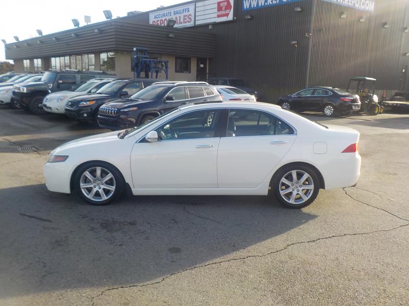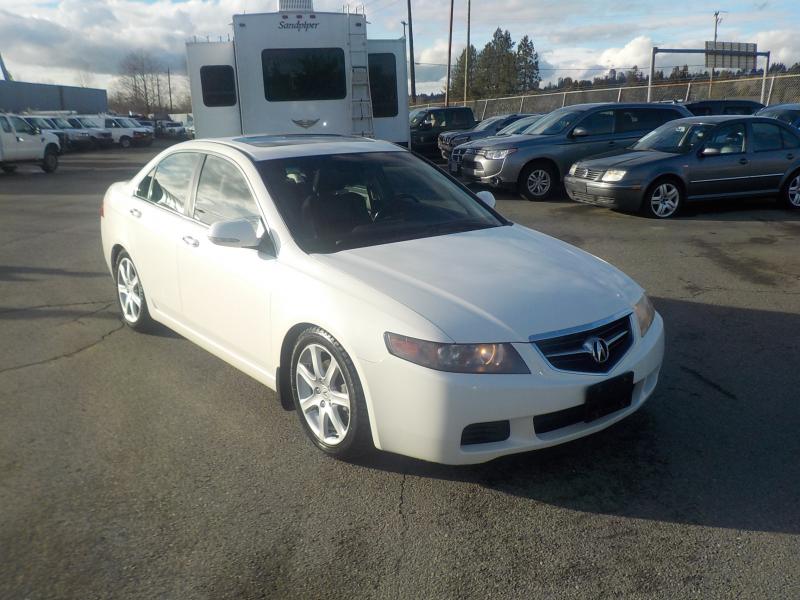 2004 Acura TSX, 2.4L, 4 cylinder, 4 door, automatic, FWD, cruise control, air conditioning, AM/FM radio, CD player, power door locks, power windows, power mirrors, power sunroof, white exterior, black interior, leather, power driver seat, heated seats, tiptronic, steering wheel controls.