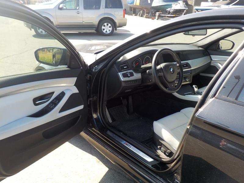 2013 BMW M5 Sedan, 4.4L, 8 cylinder, 4 door, automatic, RWD, 4-Wheel AB, cruise control, air conditioning, AM/FM radio, CD player, CD changer, DVD player, navigation aid, power door locks, power windows, power mirrors, black exterior, white interior, leather.