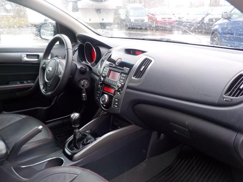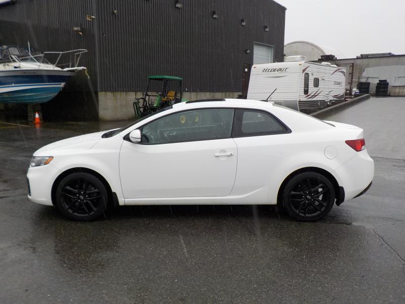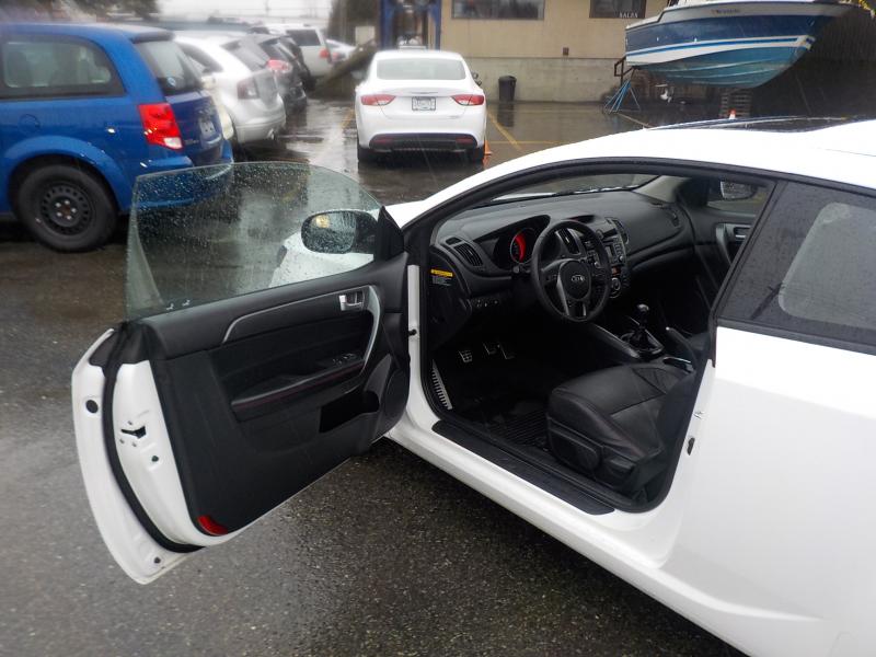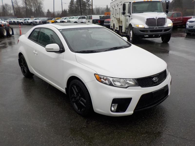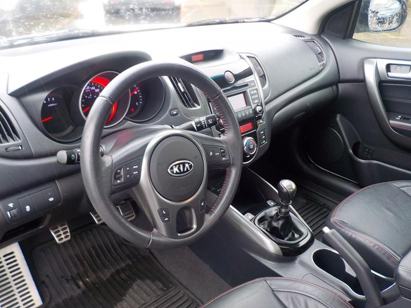 2012 Kia Forte Koup SX Manual, 2.4L, 4 cylinder, 2 door, manual, FWD, 4-Wheel AB, cruise control, air conditioning, AM/FM radio, CD player, power door locks, power windows, power mirrors, power sunroof, white exterior, black interior, leather, heated seats, AUX/iPod/USB, bluetooth, satellite radio equipped, steering wheel controls.